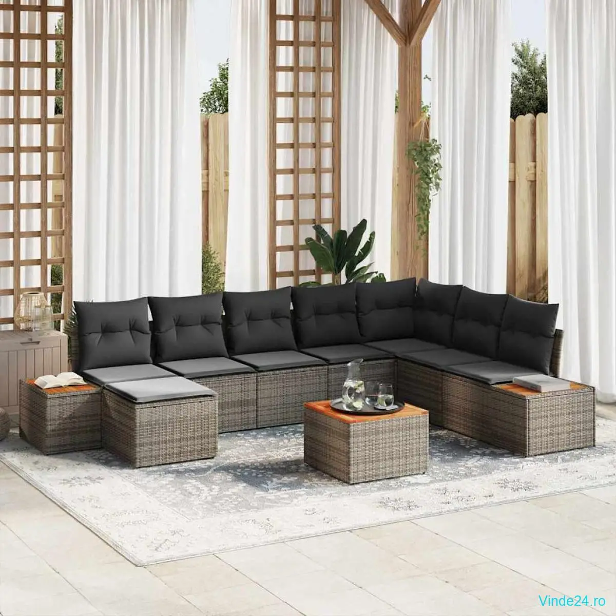 - Capacitate Generoasă: Cu loc pentru până la 9 persoane, acest set e perfect pentru întâlniri de familie sau evenimente sociale. Fiecare secțiune oferă mult loc pentru oaspeți, fiind un must-have pentru orice spațiu de distracție afară.