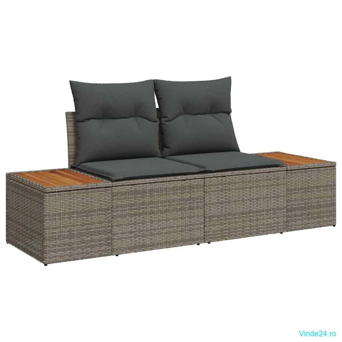 - Materiale Rezistente la Intemperii: Poliratanul e fabricat pentru vreme rea, protejat de UV. Împreună cu țesătura de poliester de calitate, asigură o utilizare de lungă durată afară, păstrând canapeaua stylish.
