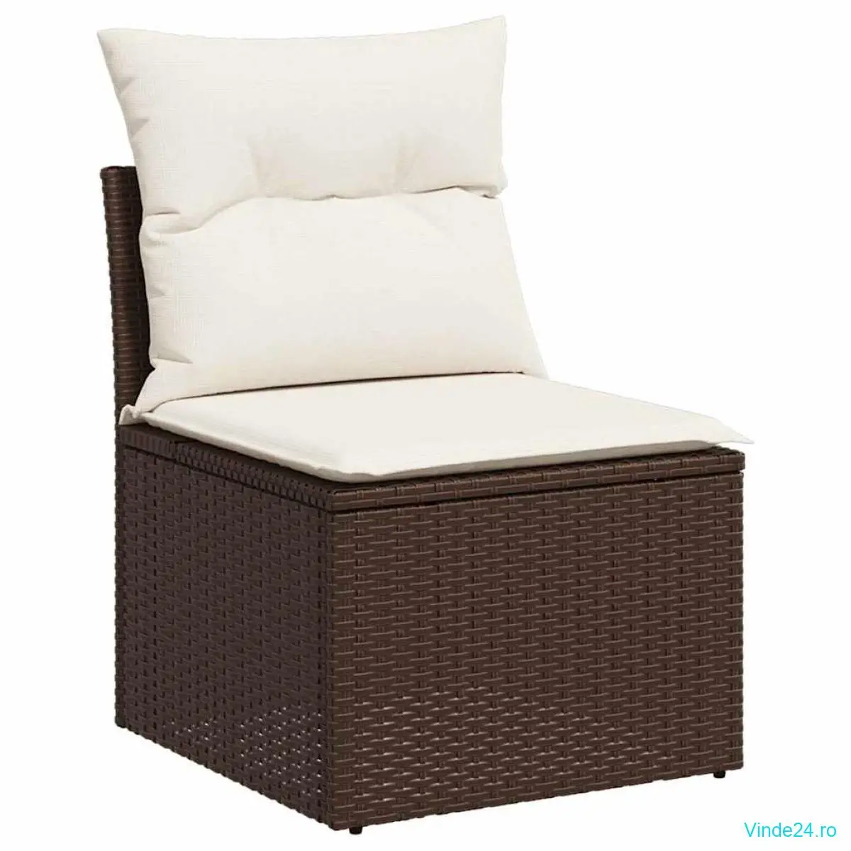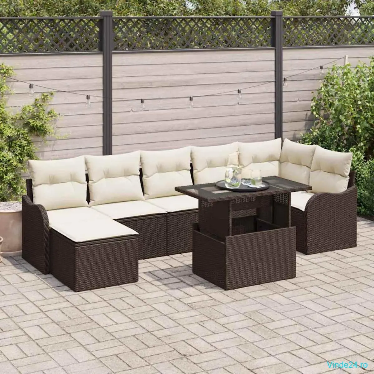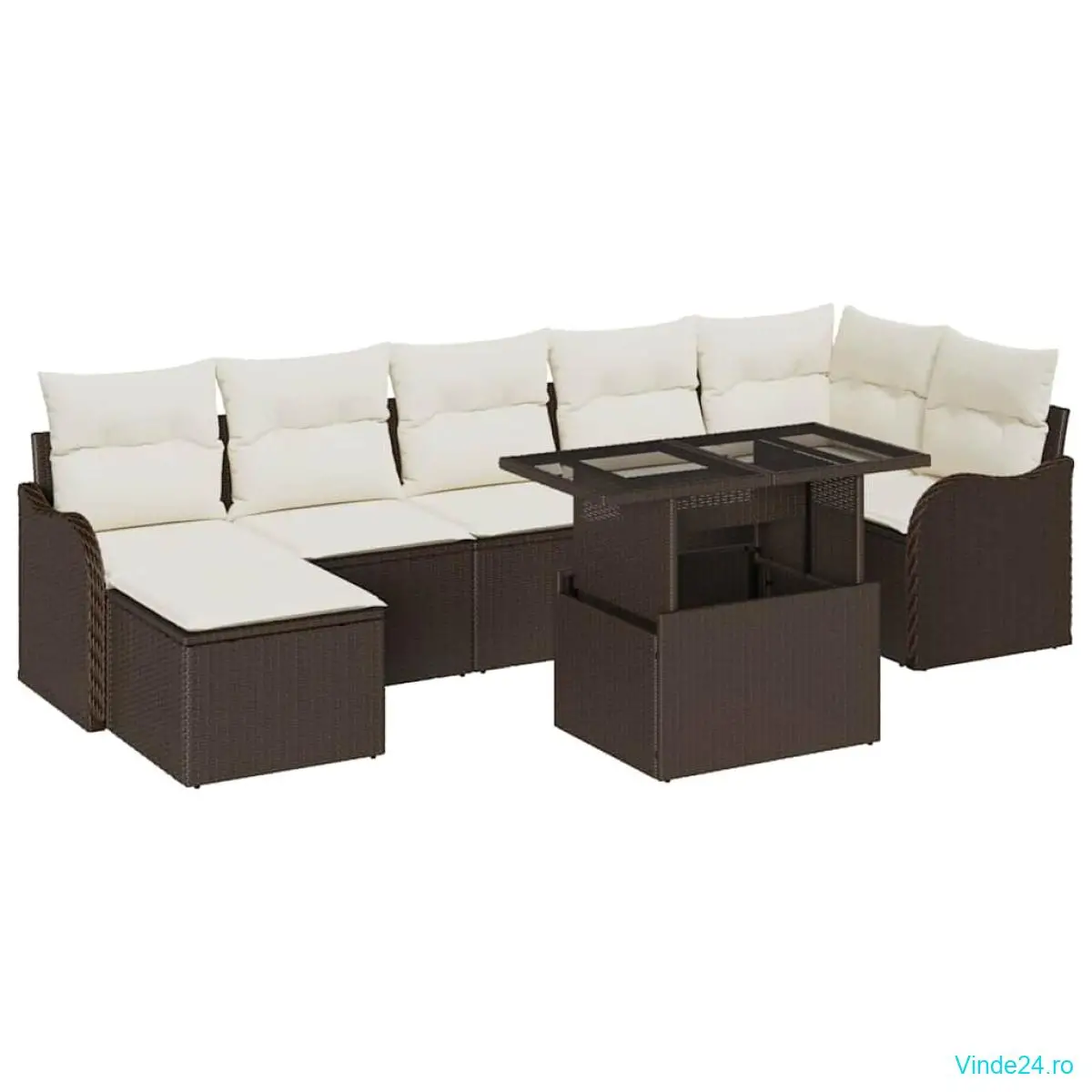 Set de 8 Piese de Sofa pentru Grădină cu Pernuțe Maro Ratan Poli
