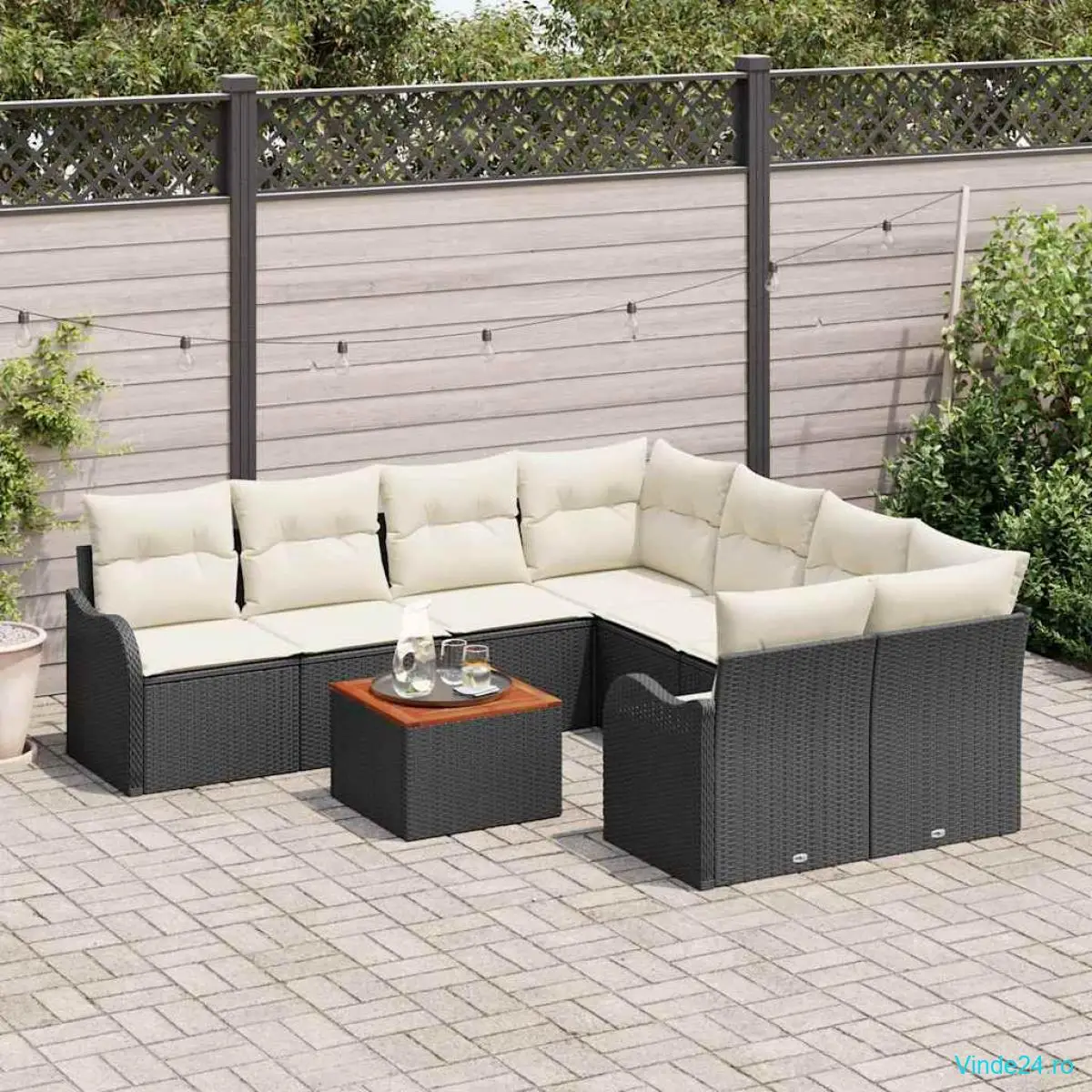 Acest set modular de sofa de grădină vorbește despre confort și stil, perfect pentru a-ți face exteriorul mai plăcut. Cu un design elegant în negru și crem, e o alegere super pentru a te relaxa și distracție cu prietenii.