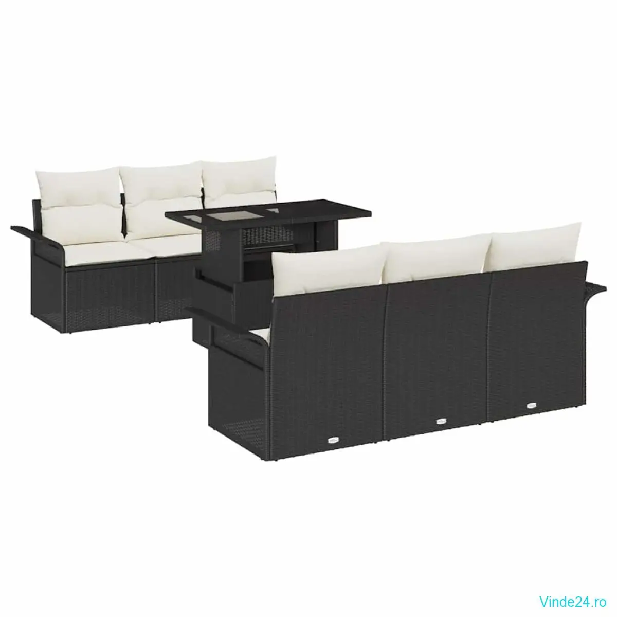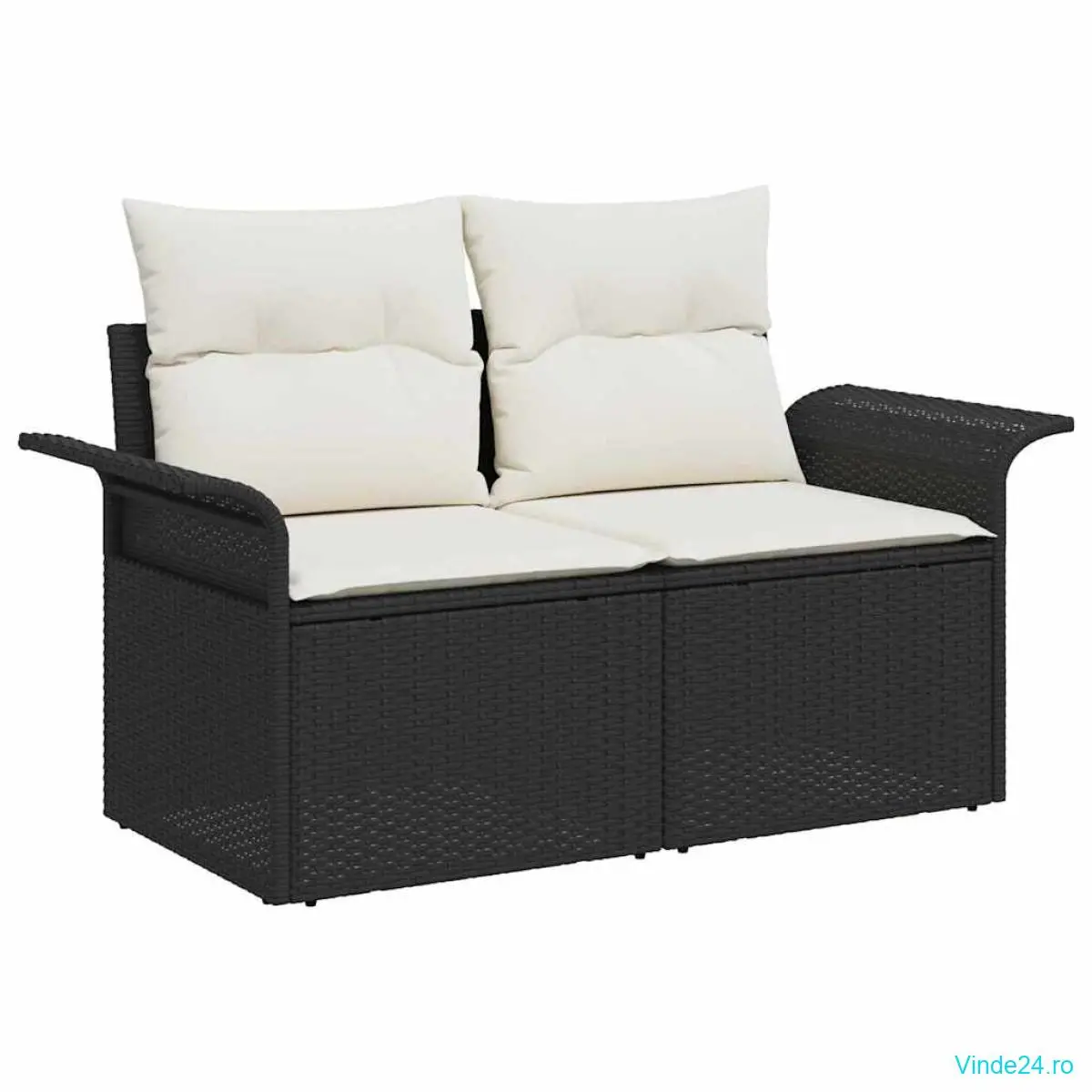 Setul ăsta de canapele pentru grădină combină stilul cu utilitatea, oferind o variantă modernă de șezut care merge peste tot. Cu designul din ratan polimer negru și pernele crem, arată tare bine pentru relaxare în grădină sau pentru a primii prietenii pe terasă.