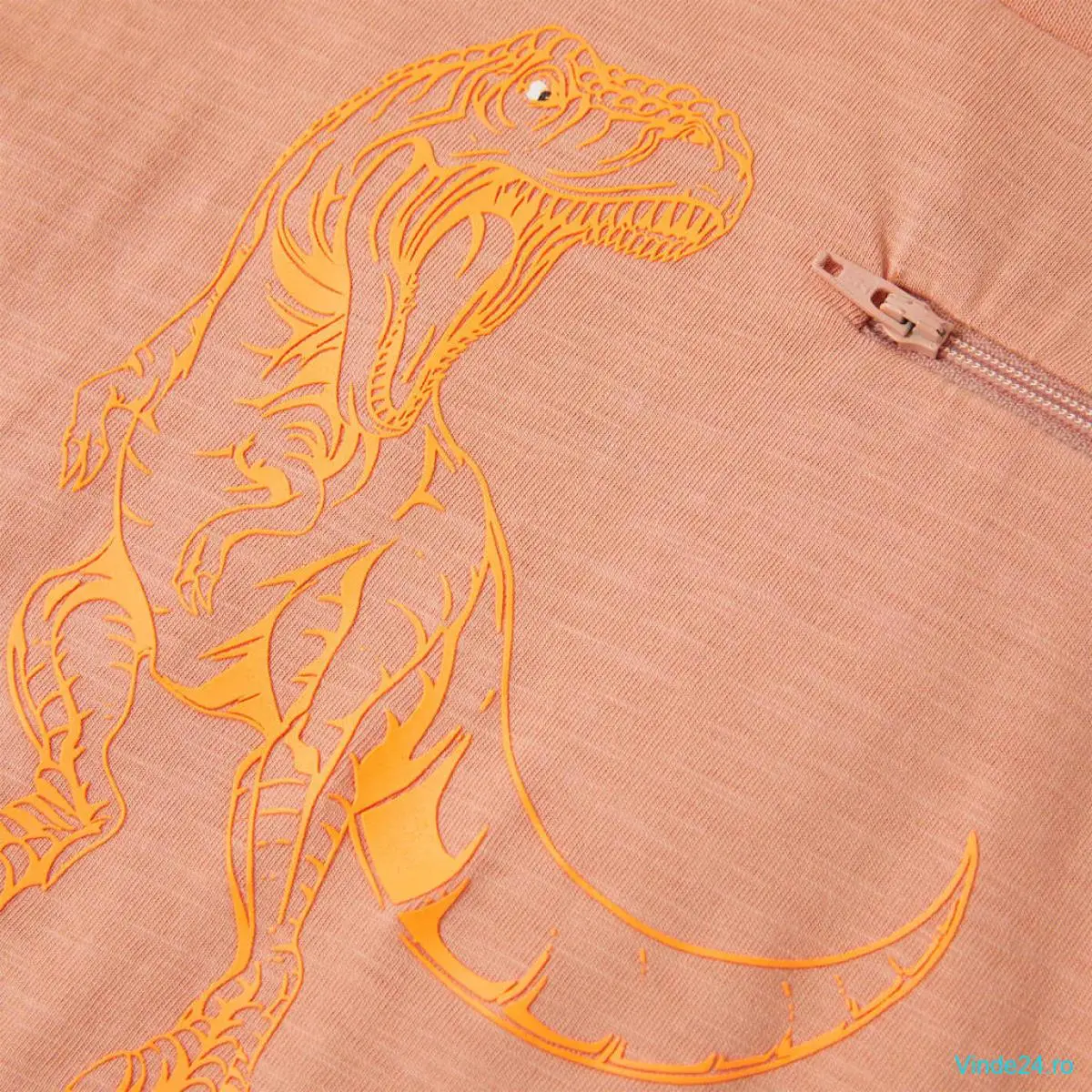 Acest tricou pentru copii are mâneci scurte, decolteu rotund cu nervuri și croială dreaptă. Acest tricou pentru copii prezintă un dinozaur și un fermoar. Tricoul pentru copii cu mânecă scurtă este realizat din bumbac 100%, pentru o atingere moale și confortabilă.