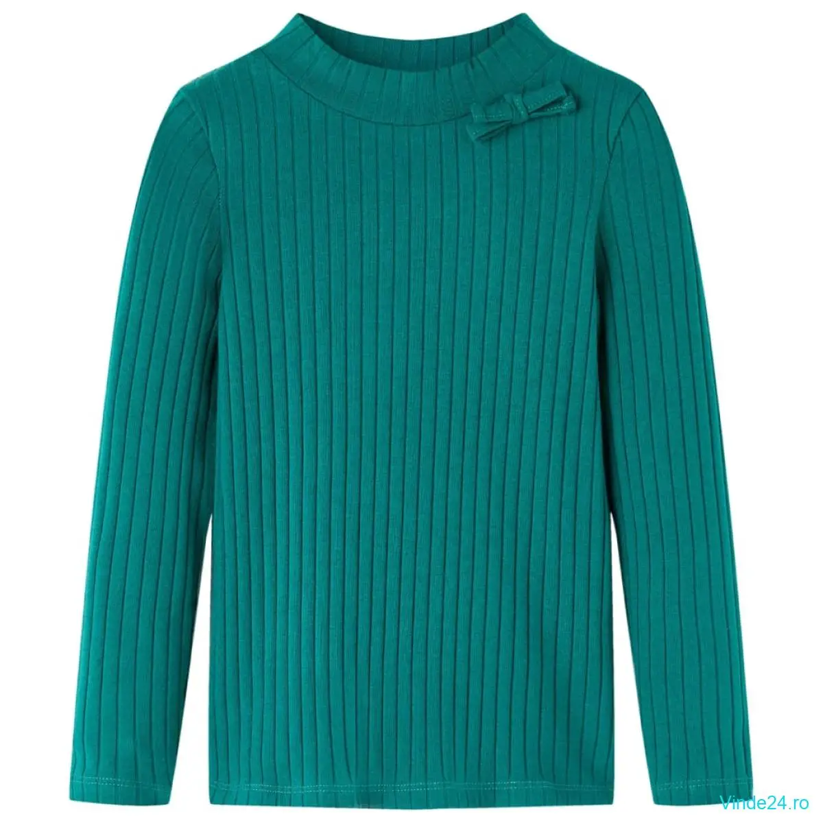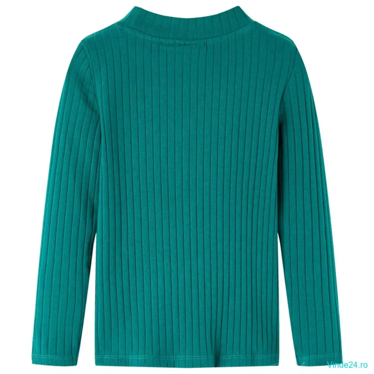 Tricou de copii cu mâneci lungi, tricot cu nervuri, verde închis, 128