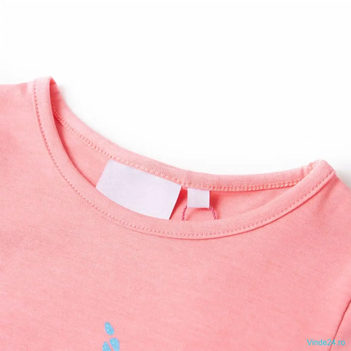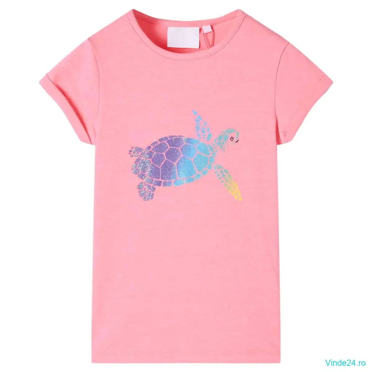 Acest tricou pentru copii are mâneci scurte, decolteu rotund și croială dreaptă. Acest tricou roz aprins prezintă o broască țestoasă strălucitoare pe piept. Tricoul pentru copii cu mânecă scurtă este confecționat din 95% bumbac și 5% elastan, pentru confort și respirabilitate.