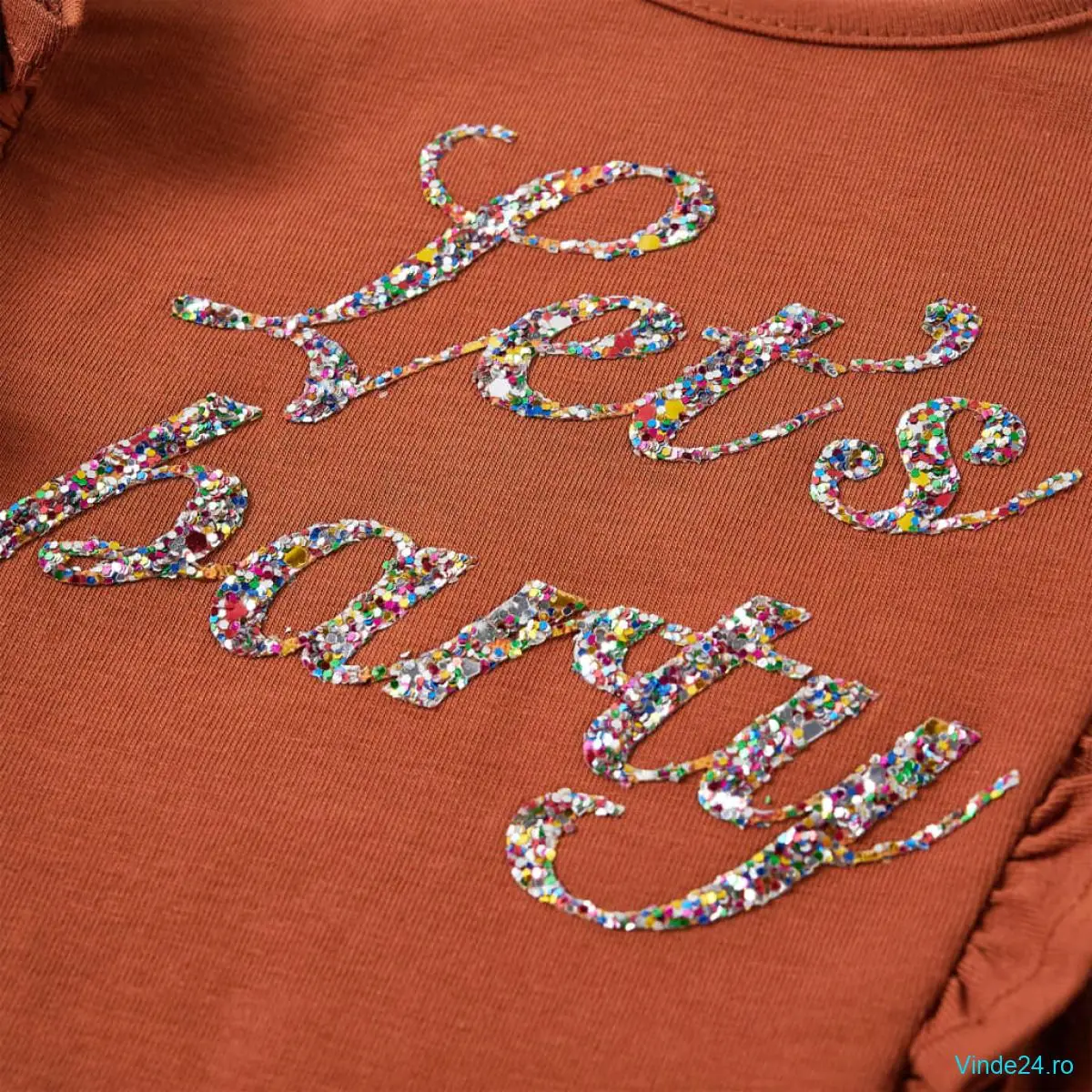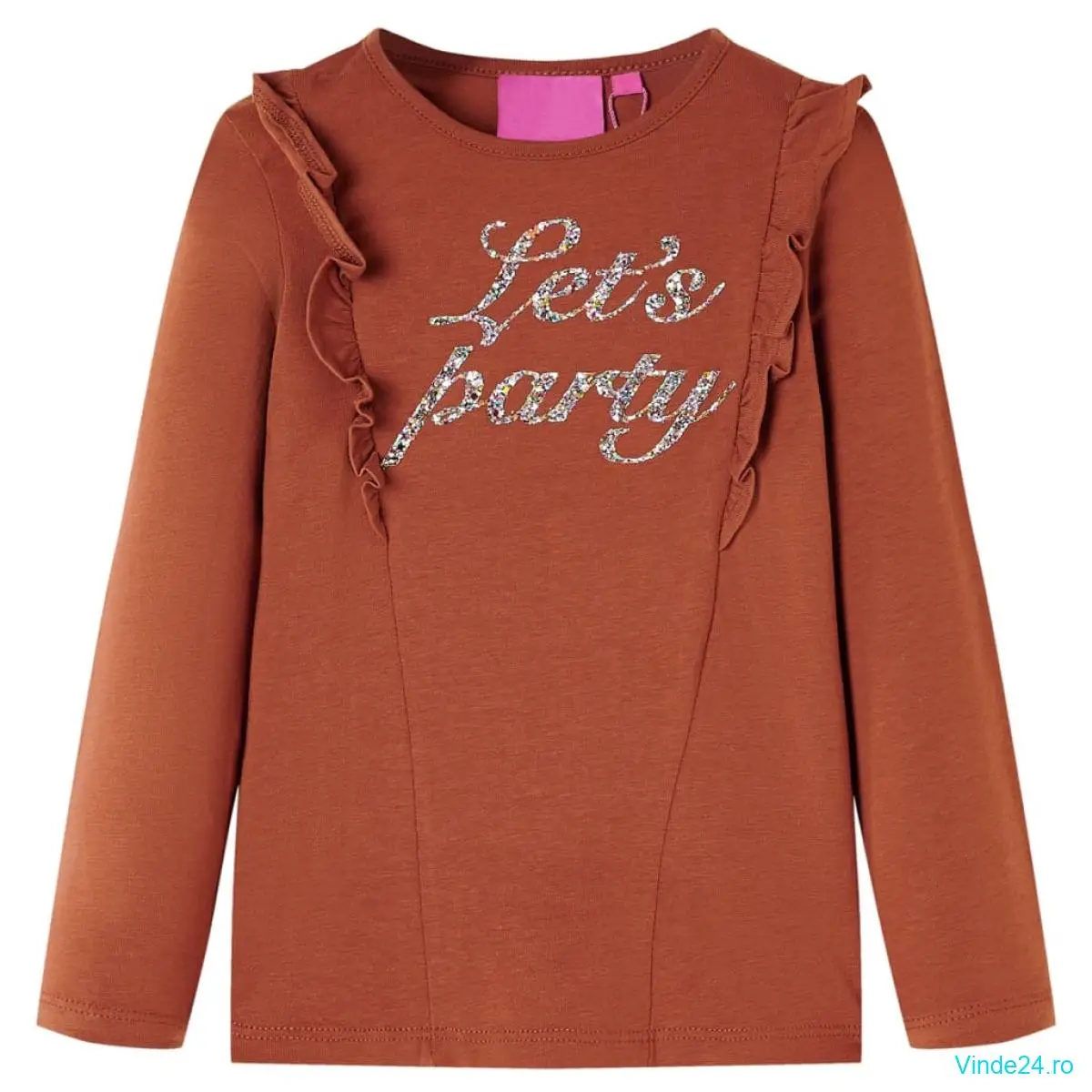 Acest tricou pentru copii are mâneci lungi, decolteu rotund și volane frumoase. Volanele drăguțe aduc tricoului pentru copii eleganță și frumusețe. Tricoul pentru copii cu mânecă lungă este realizat din 95% bumbac și 5% elastan pentru confort și respirabilitate.