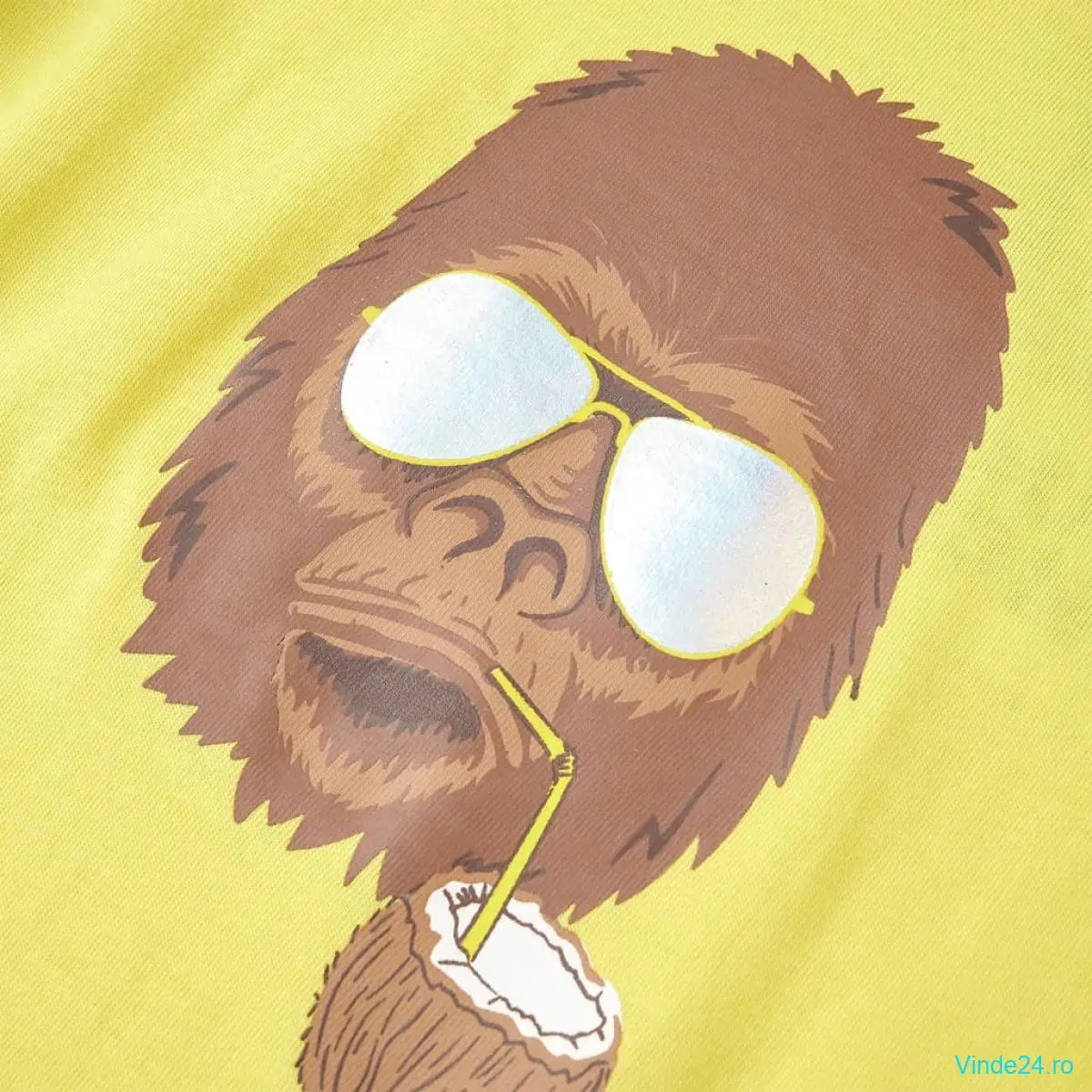 Acest tricou pentru copii are mâneci scurte, decolteu rotund și croială dreaptă. Tricoul pentru copii prezintă o gorilă și o nucă de cocos pe partea din față. Tricoul pentru copii este confecționat din bumbac 100%, pentru o atingere moale și confortabilă.
