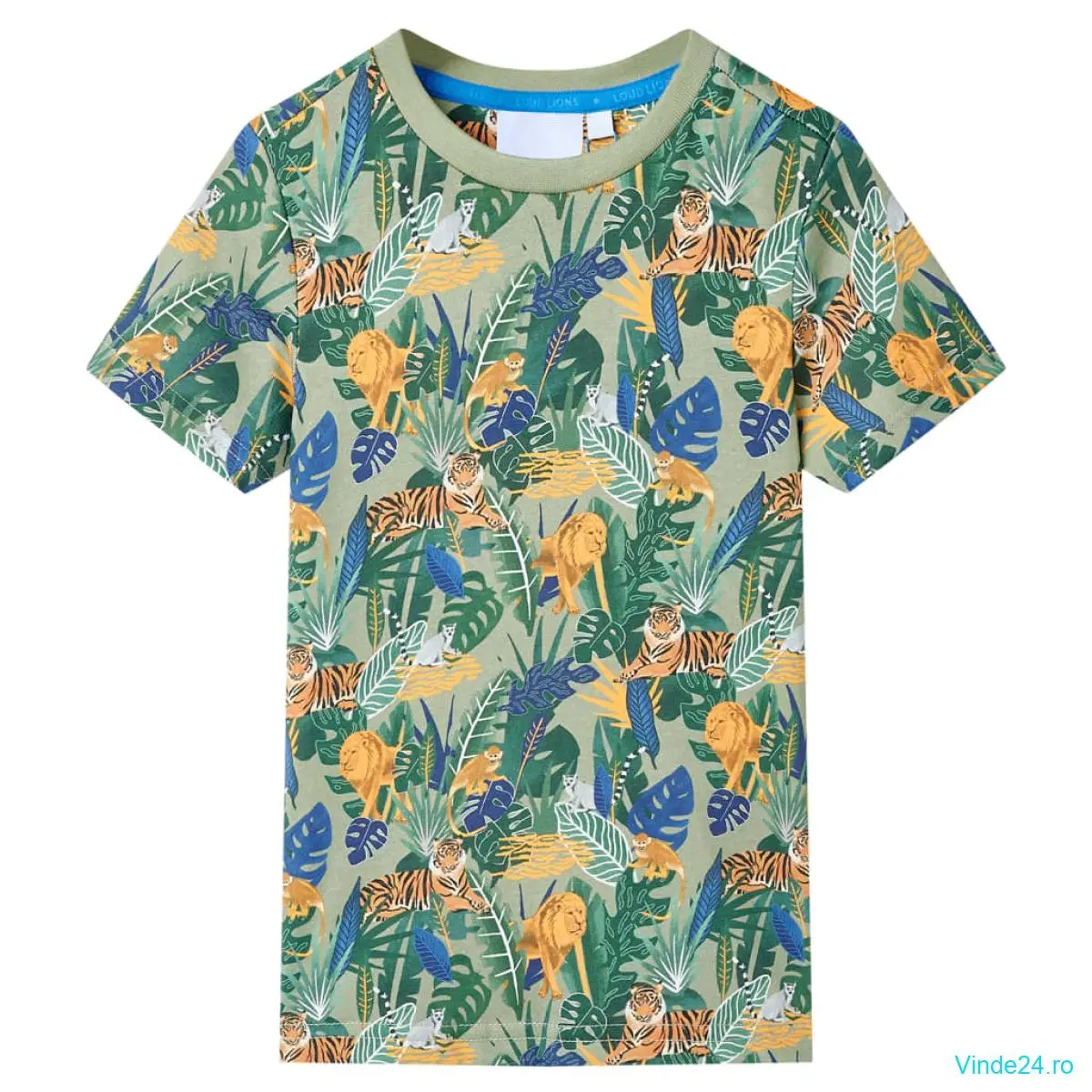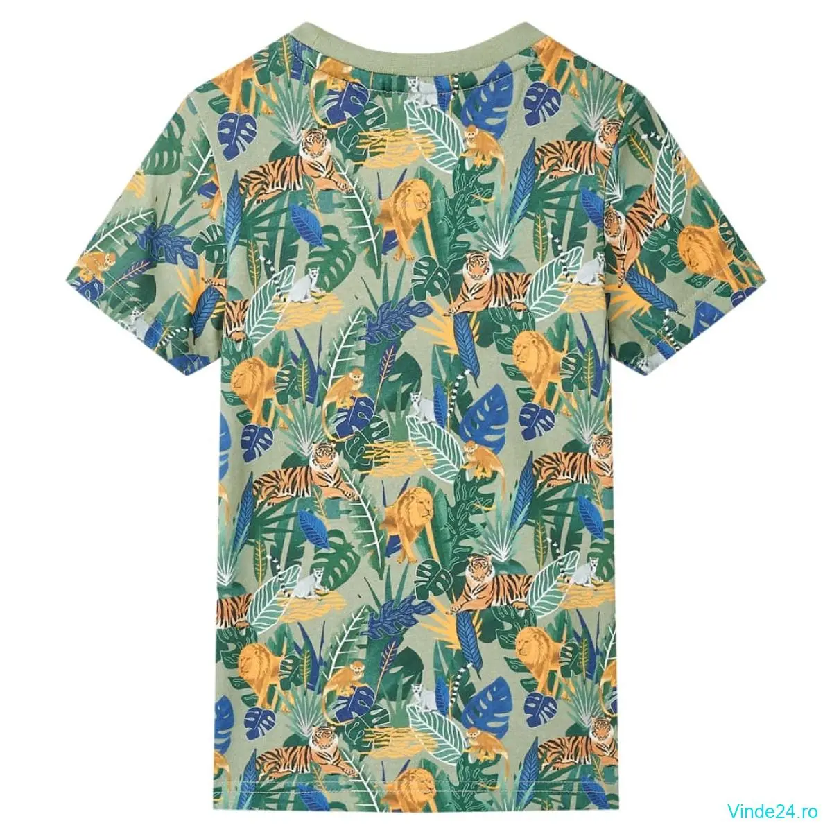 Acest tricou pentru copii are mâneci scurte, decolteu rotund și croială dreaptă. Tricoul pentru copii prezintă diverse animale și frunze. Tricoul pentru copii este confecționat din bumbac 100%, pentru o atingere moale și confortabilă.