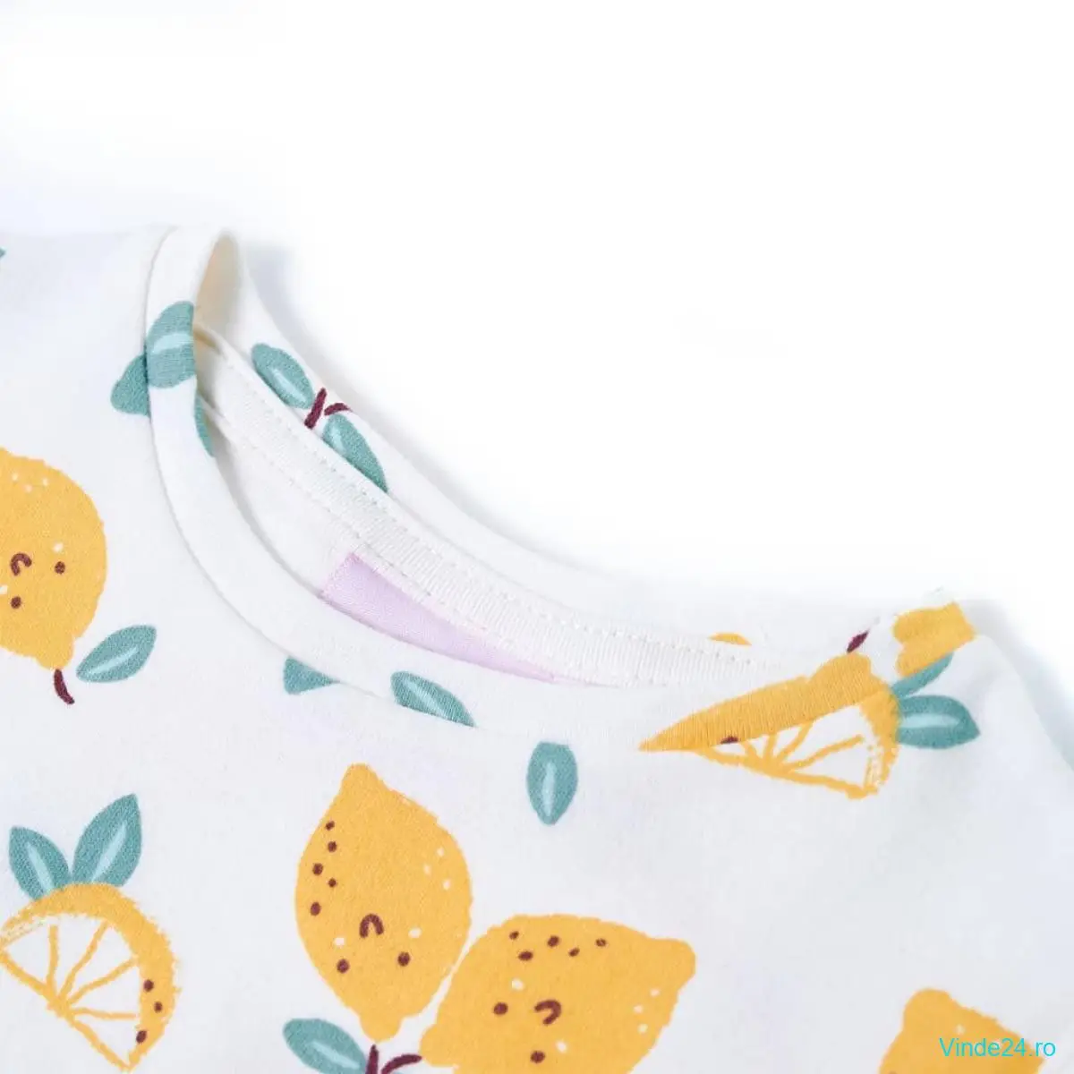 Acest tricou pentru copii are mâneci scurte, decolteu rotund și croială dreaptă. Tricoul pentru copii prezintă modele drăguțe cu lămâi pe partea din față și are tivul legat tip cravată. Tricoul pentru copii este confecționat din bumbac 100%, pentru o atingere moale și confortabilă.