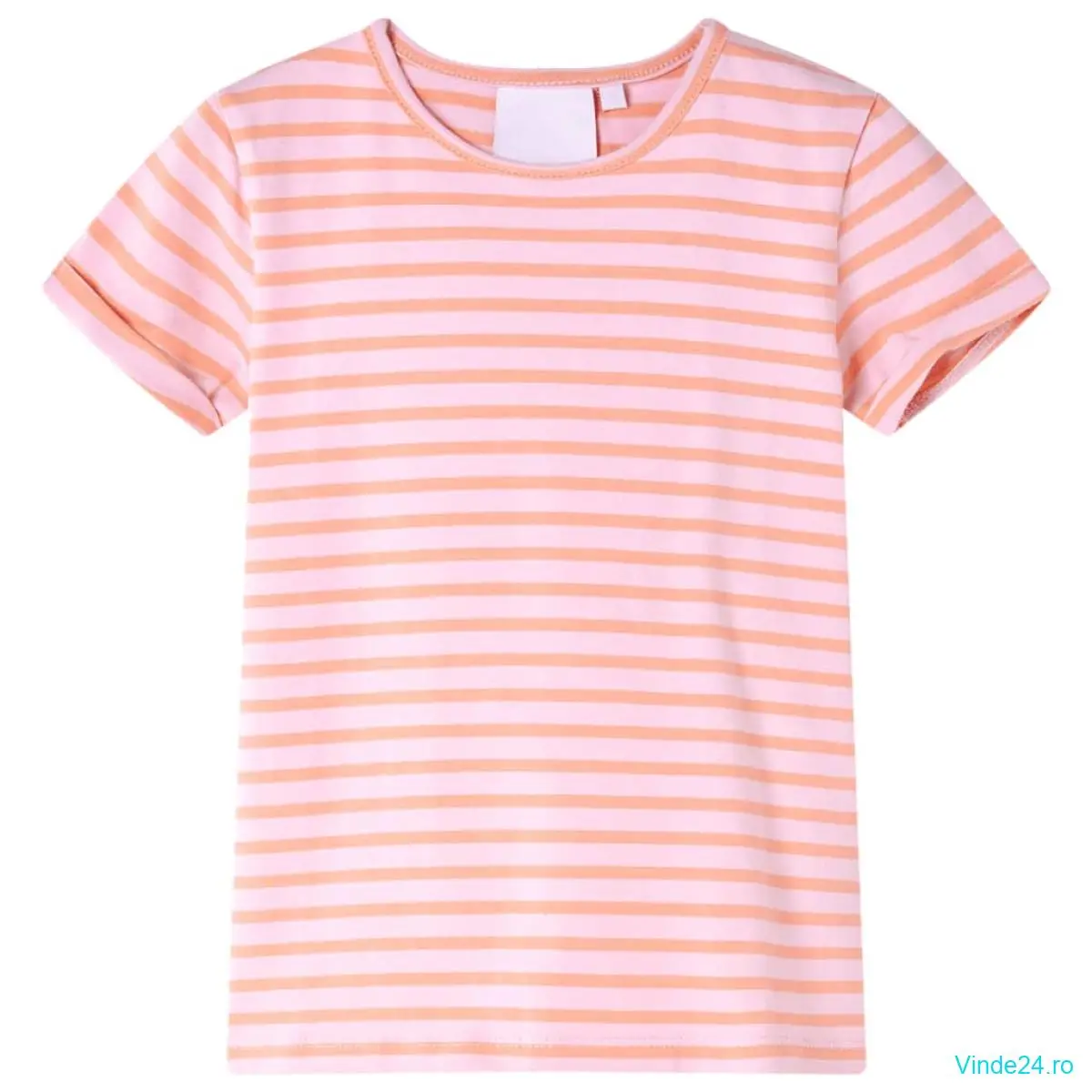 Acest tricou pentru copii are mâneci scurte întoarse, decolteu rotund și croială dreaptă. Acest tricou are un design cu dungi peste tot. Tricoul pentru copii cu mânecă scurtă este confecționat din 95% bumbac și 5% elastan, pentru confort și respirabilitate.