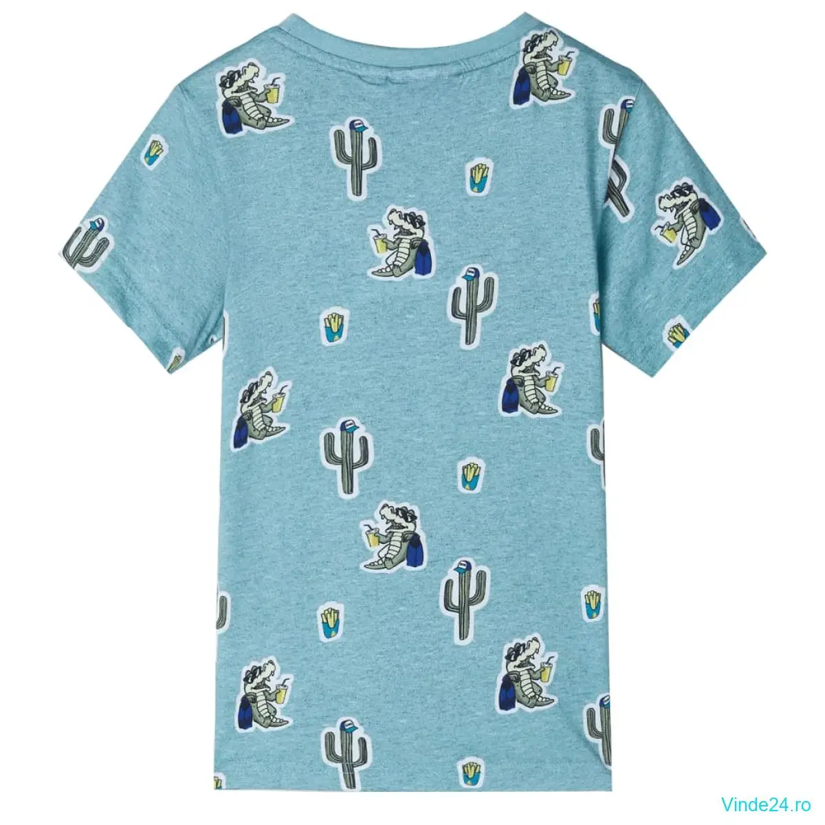 Acest tricou pentru copii are mâneci scurte, decolteu rotund și croială dreaptă. Acest tricou este imprimat cu crocodili din desene animate, cactuși și cartofi prăjiți, peste tot. Tricoul pentru copii cu mânecă scurtă este confecționat din bumbac pieptănat 100% care este tratat cu silicon si spălare enzimatică, pentru o atingere moale și confortabilă.