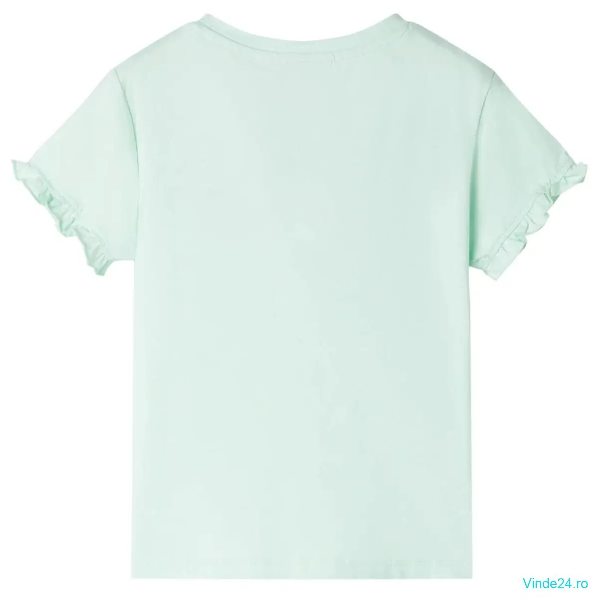 Acest tricou pentru copii are mâneci scurte cu margini cu volane, decolteu rotund și croială dreaptă. Acest tricou prezintă o înghețată flamingo pentru un aspect atrăgător și interesant! Tricoul pentru copii cu mânecă scurtă este confecționat din 95% bumbac și 5% elastan, pentru confort și respirabilitate.