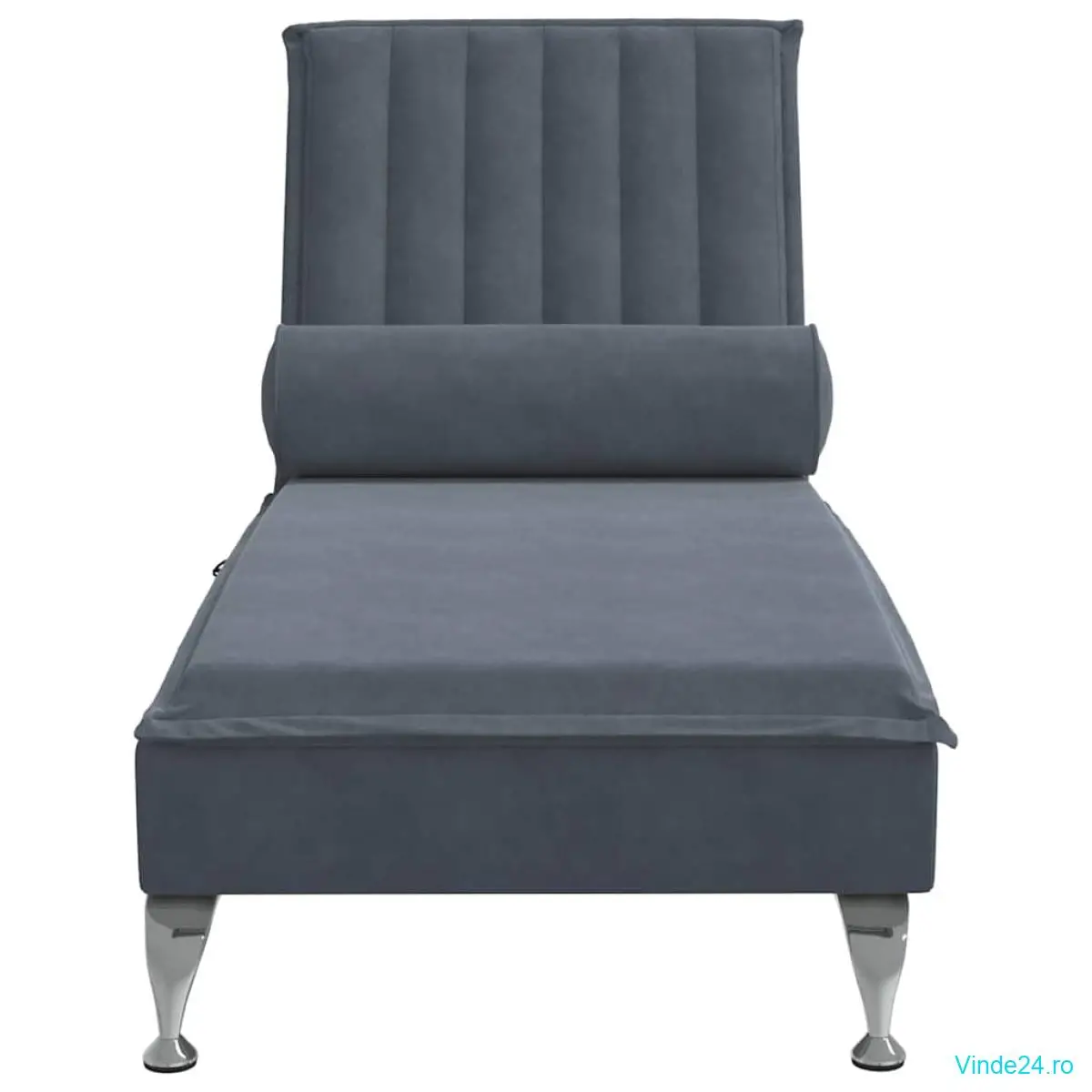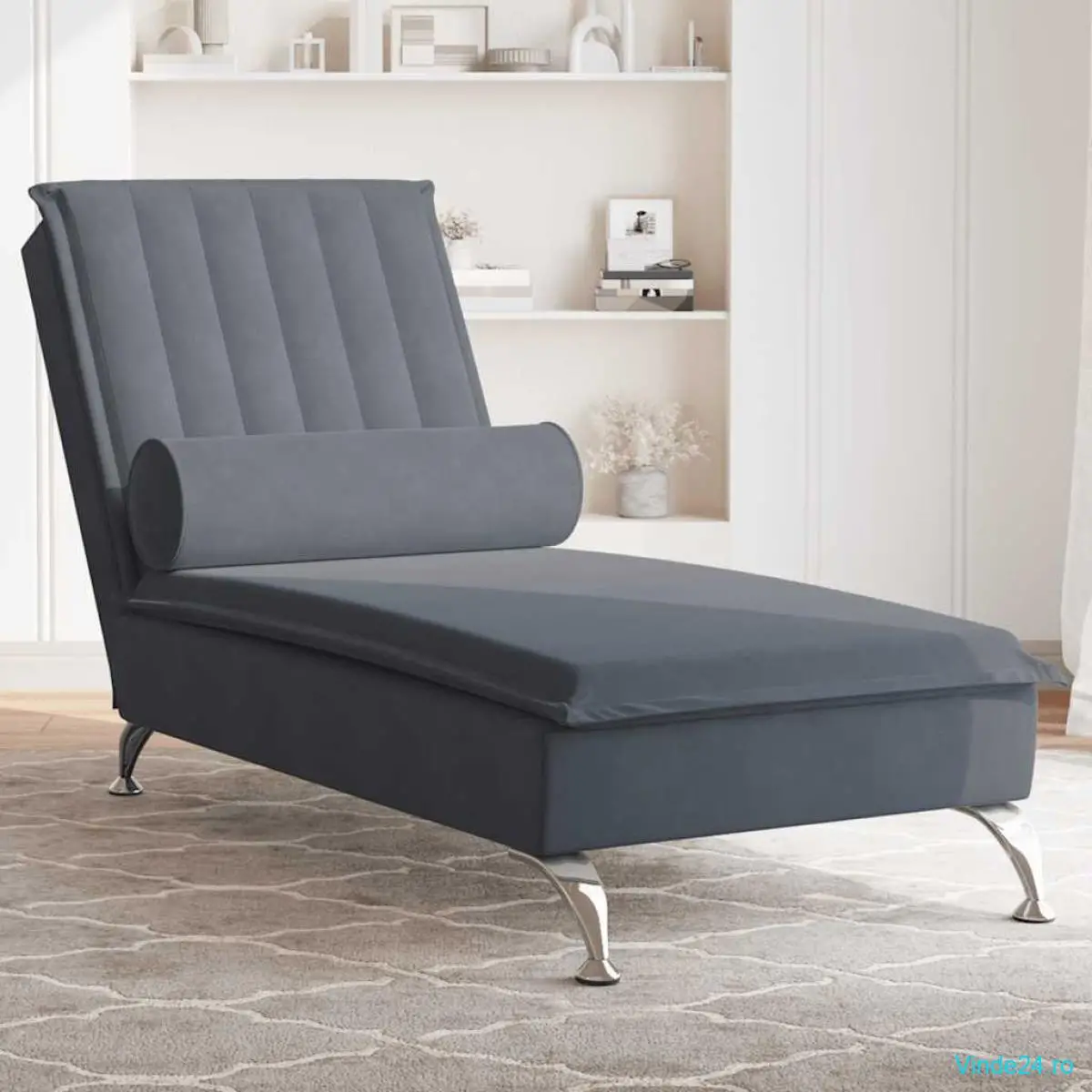vidaXLȘezlong de masaj cu sprijin, gri închis, catifea