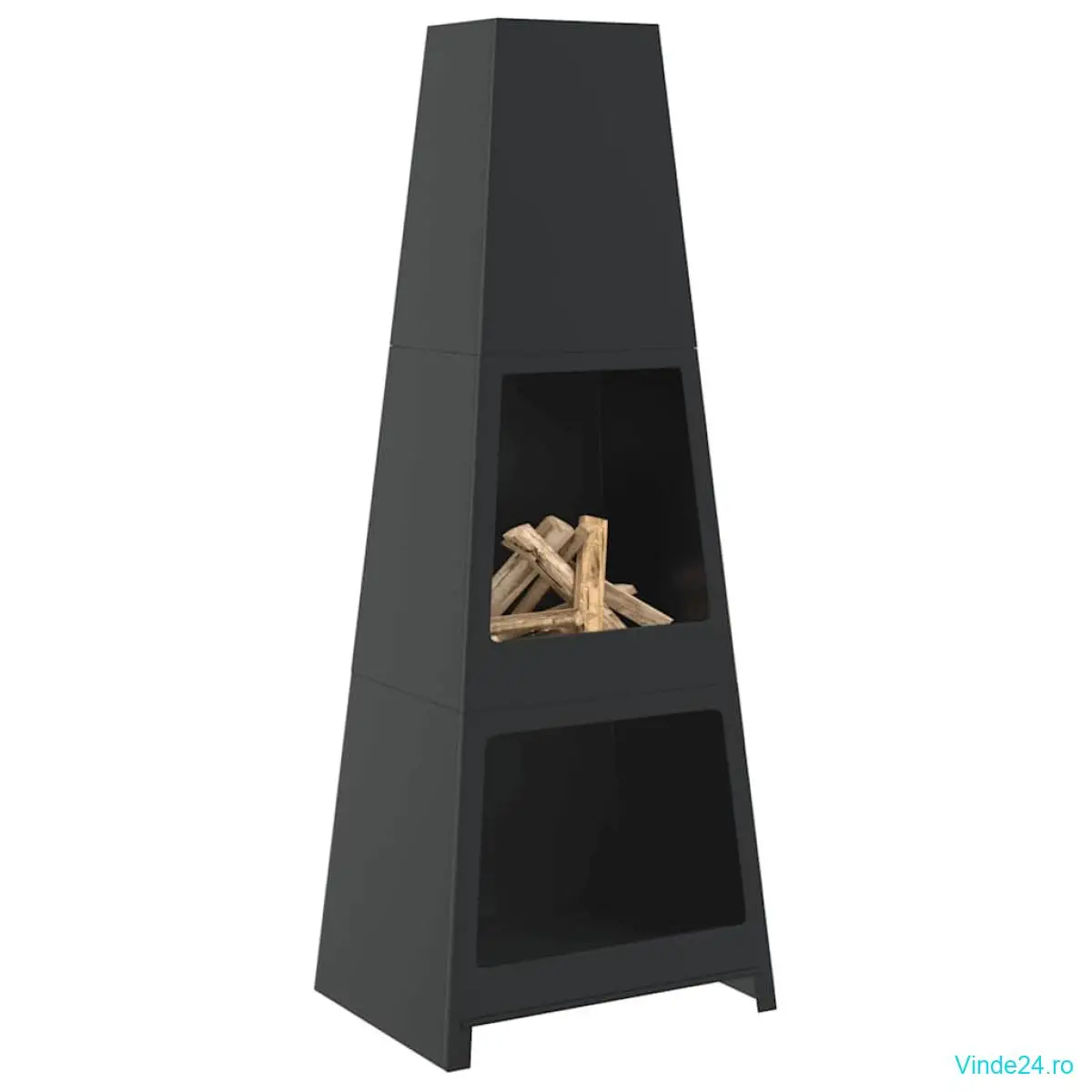 vidaXL Șemineu de exterior, magazie de bușteni, negru design turn oțel