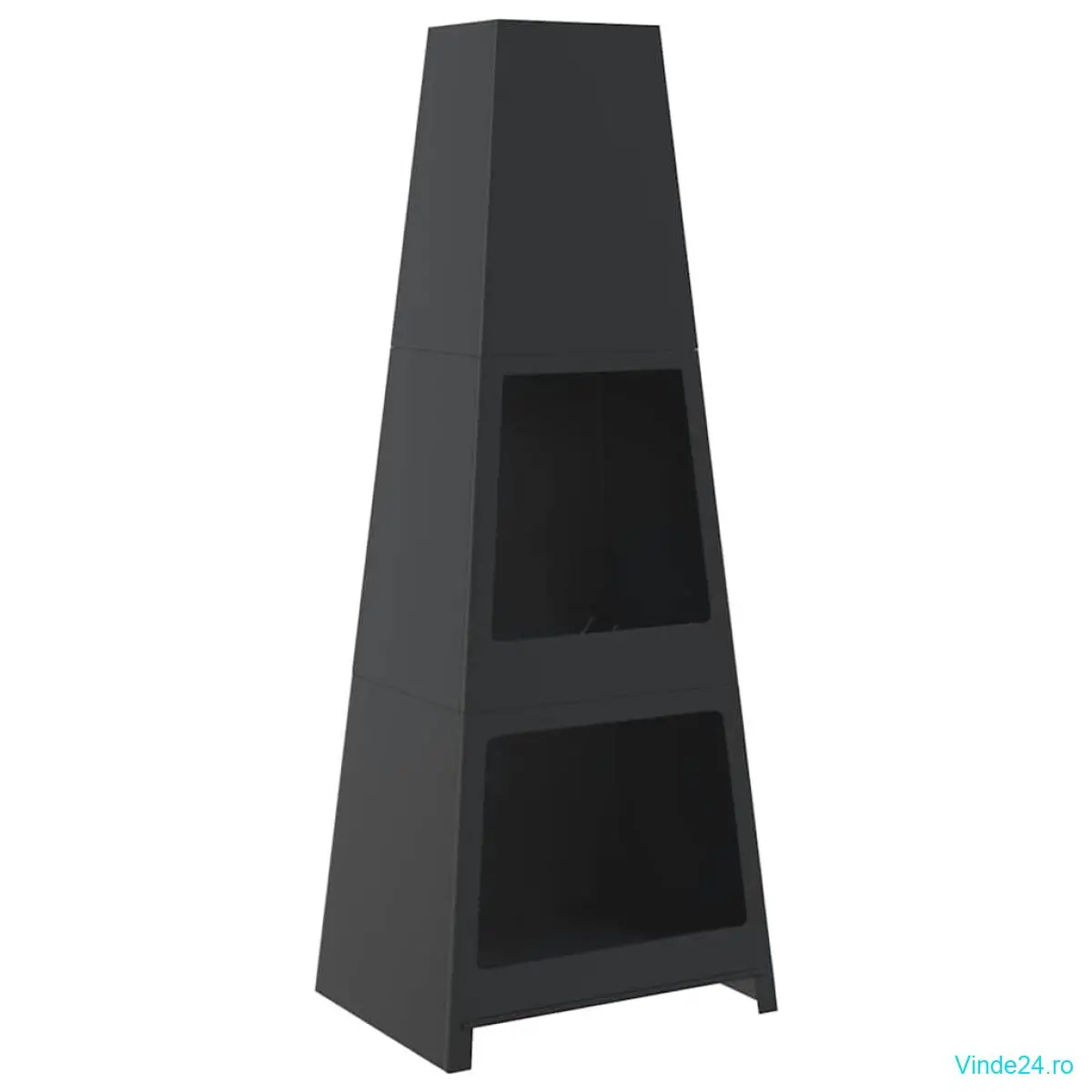 vidaXL Șemineu de exterior, magazie de bușteni, negru design turn oțel
