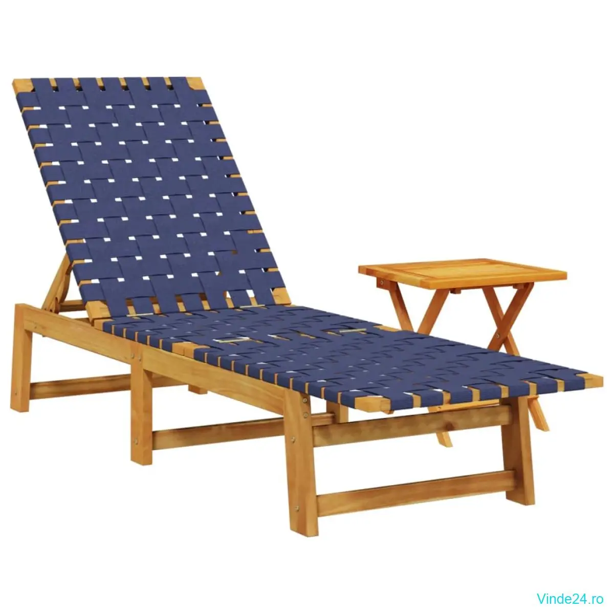 vidaXL Șezlong cu masă, albastru închis, lemn masiv acacia și țesătură