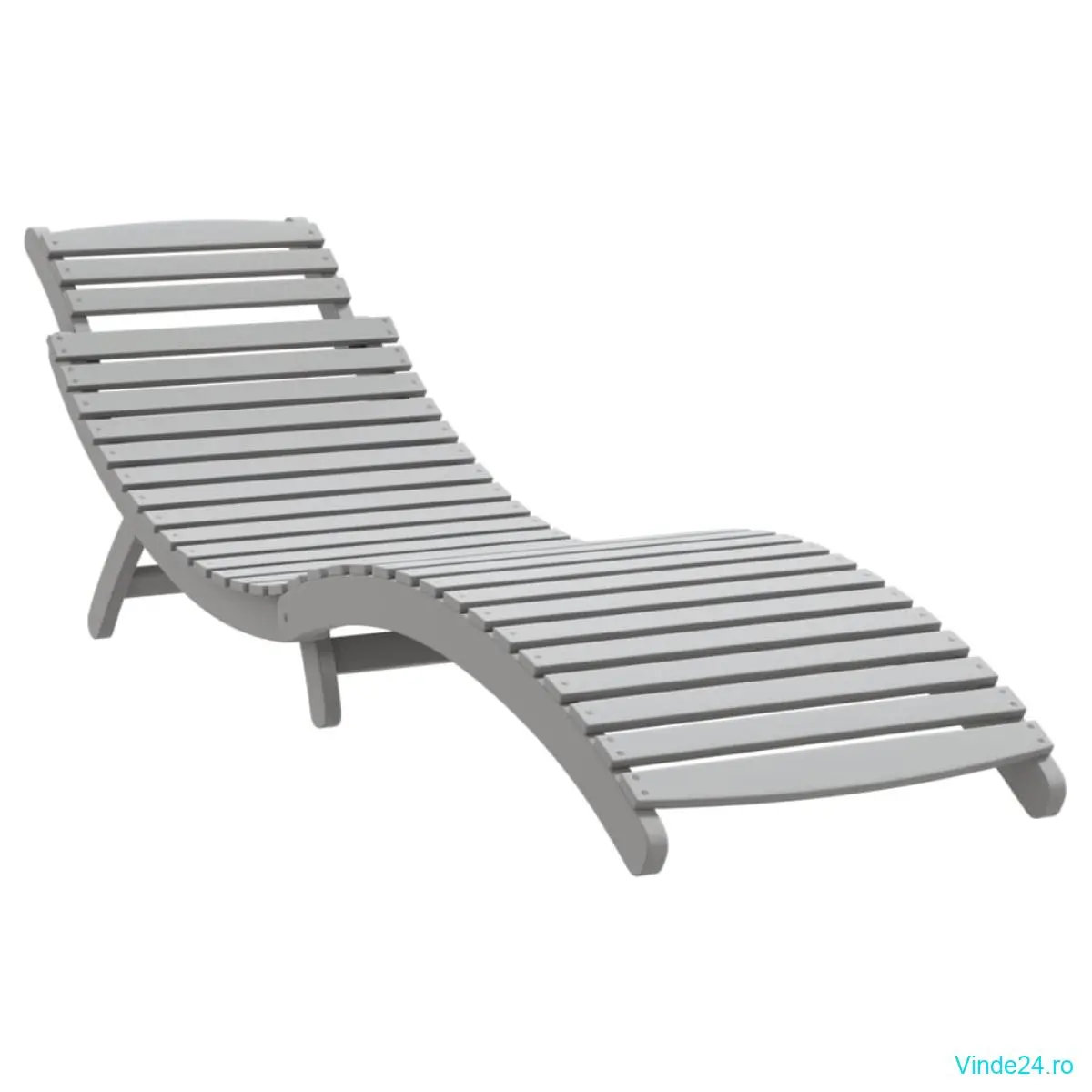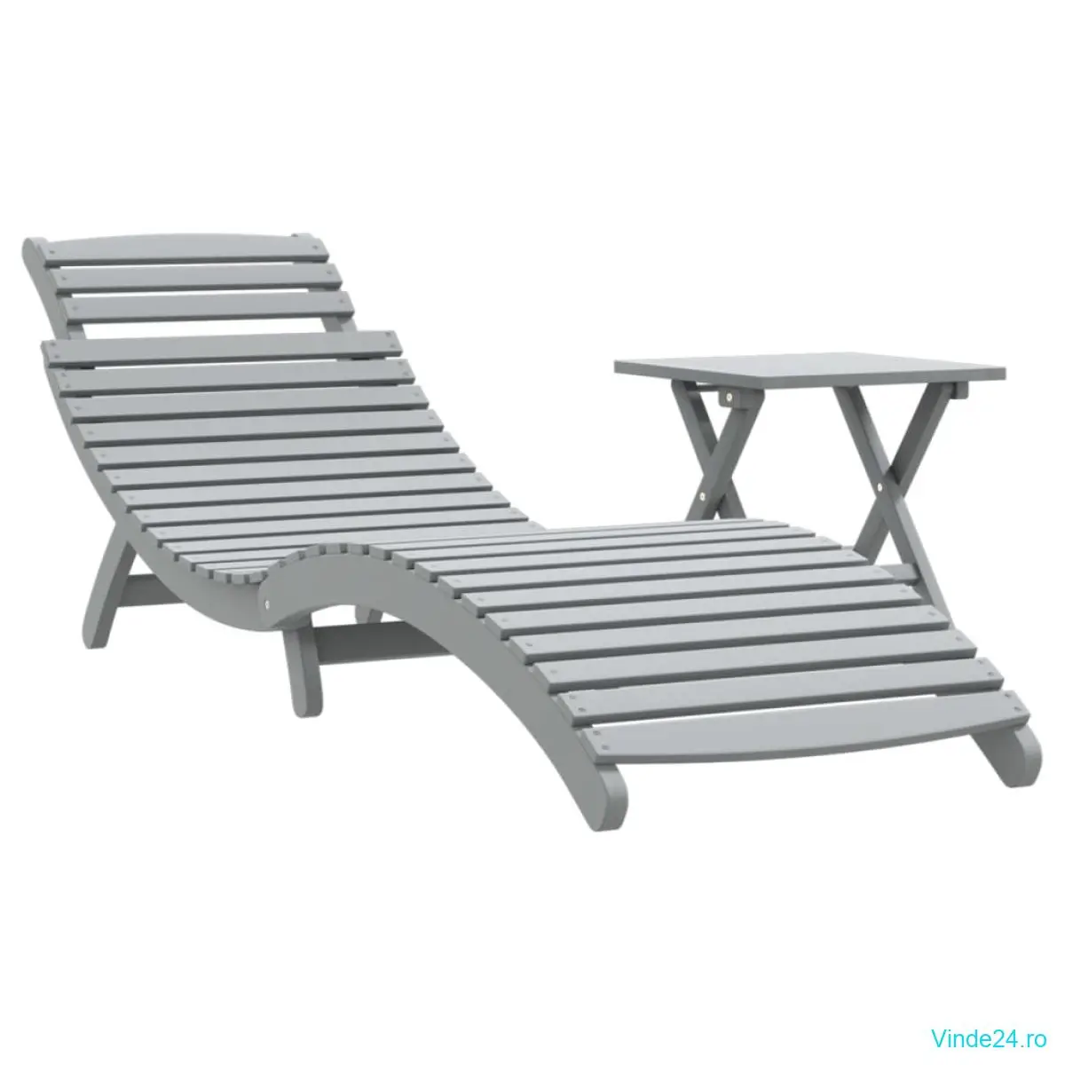 vidaXL Șezlong cu masă, gri, lemn masiv de acacia