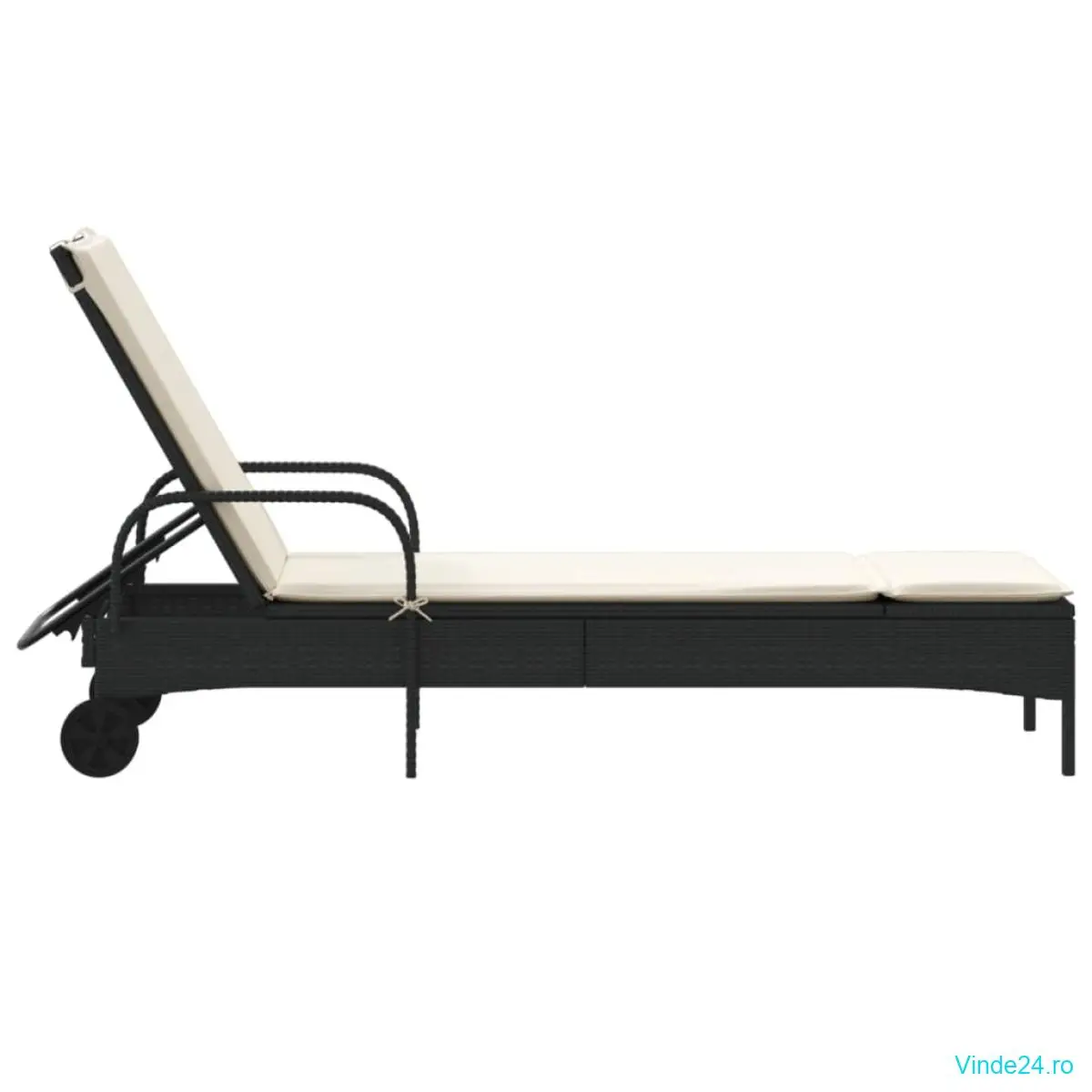 vidaXL Șezlong cu roți și pernă, negru, poliratan