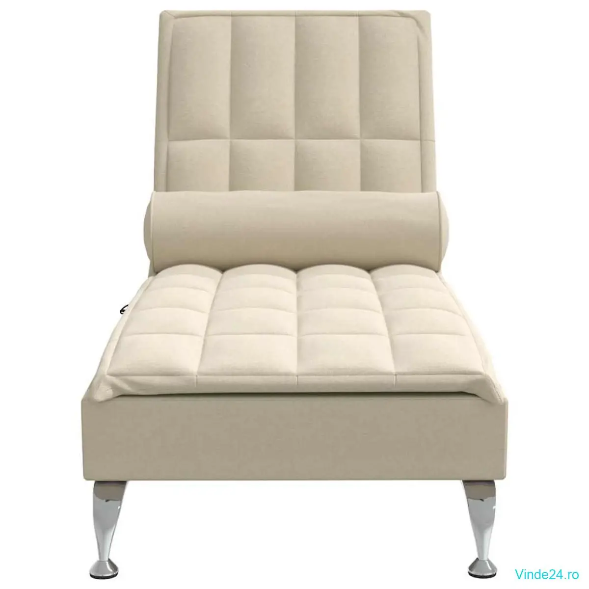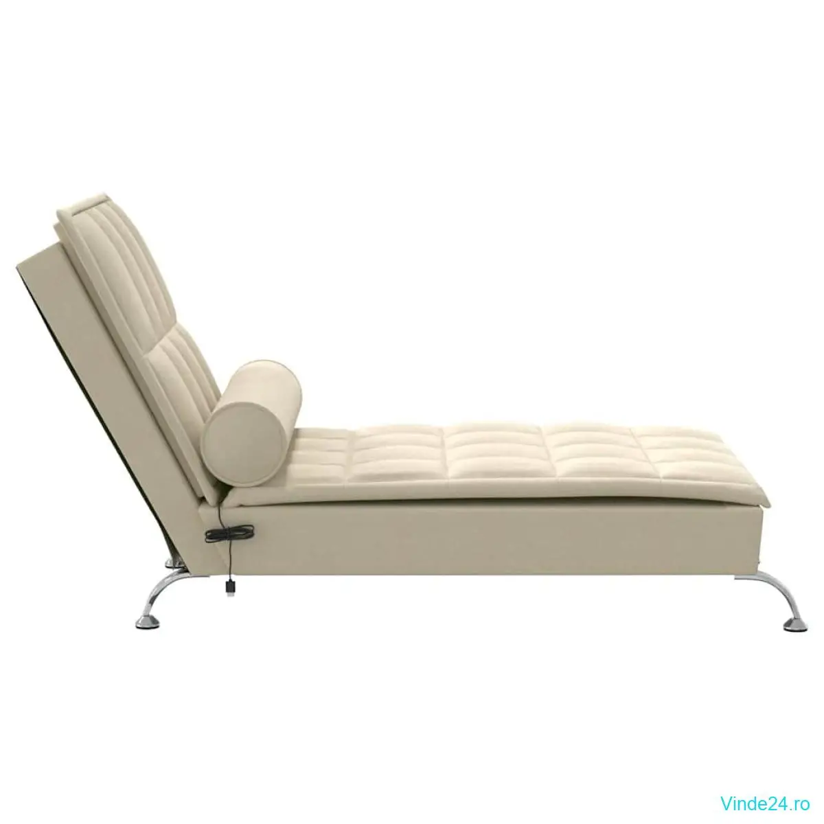 vidaXL Șezlong de masaj cu sprijin, crem, material textil