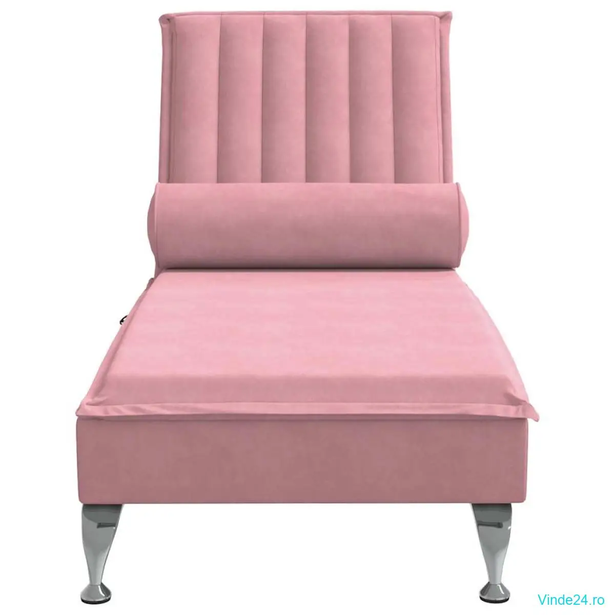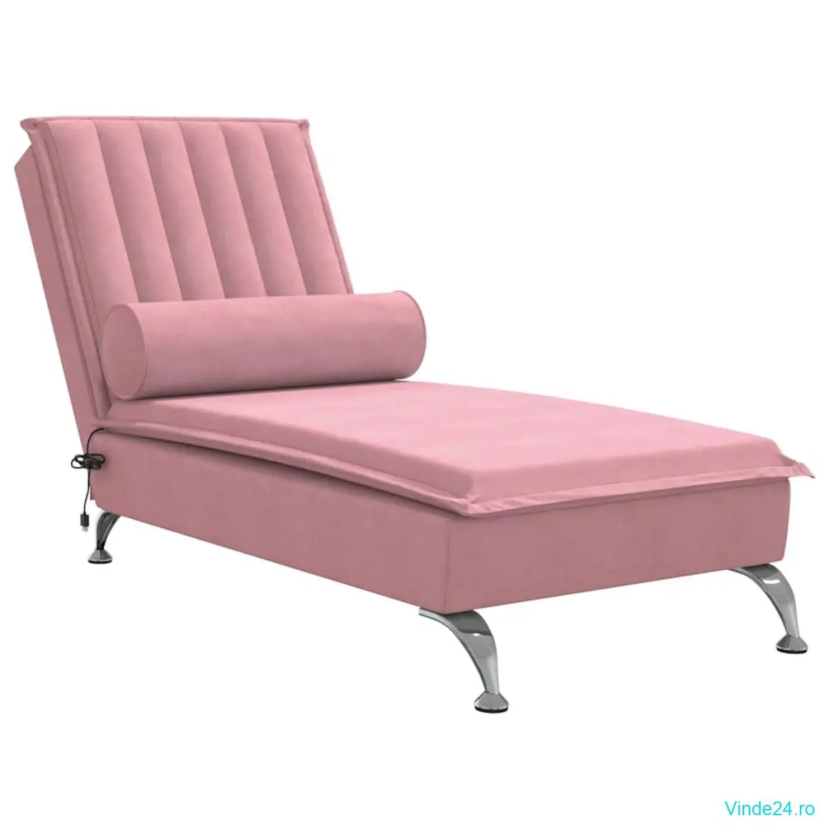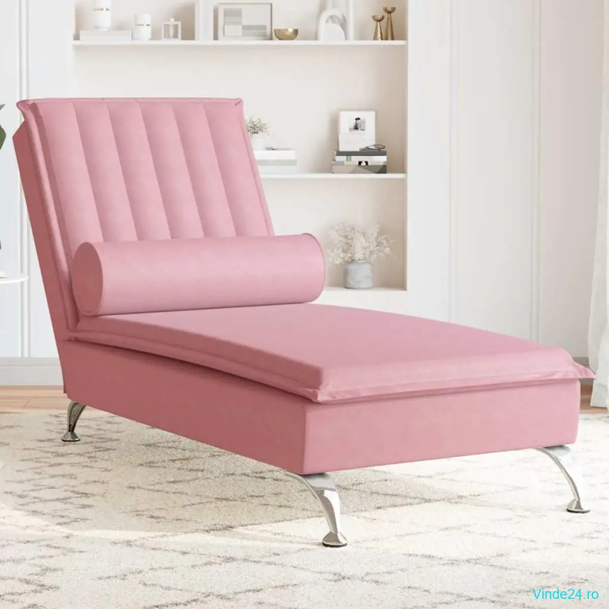 vidaXL Șezlong de masaj cu suport sprijin, roz, catifea