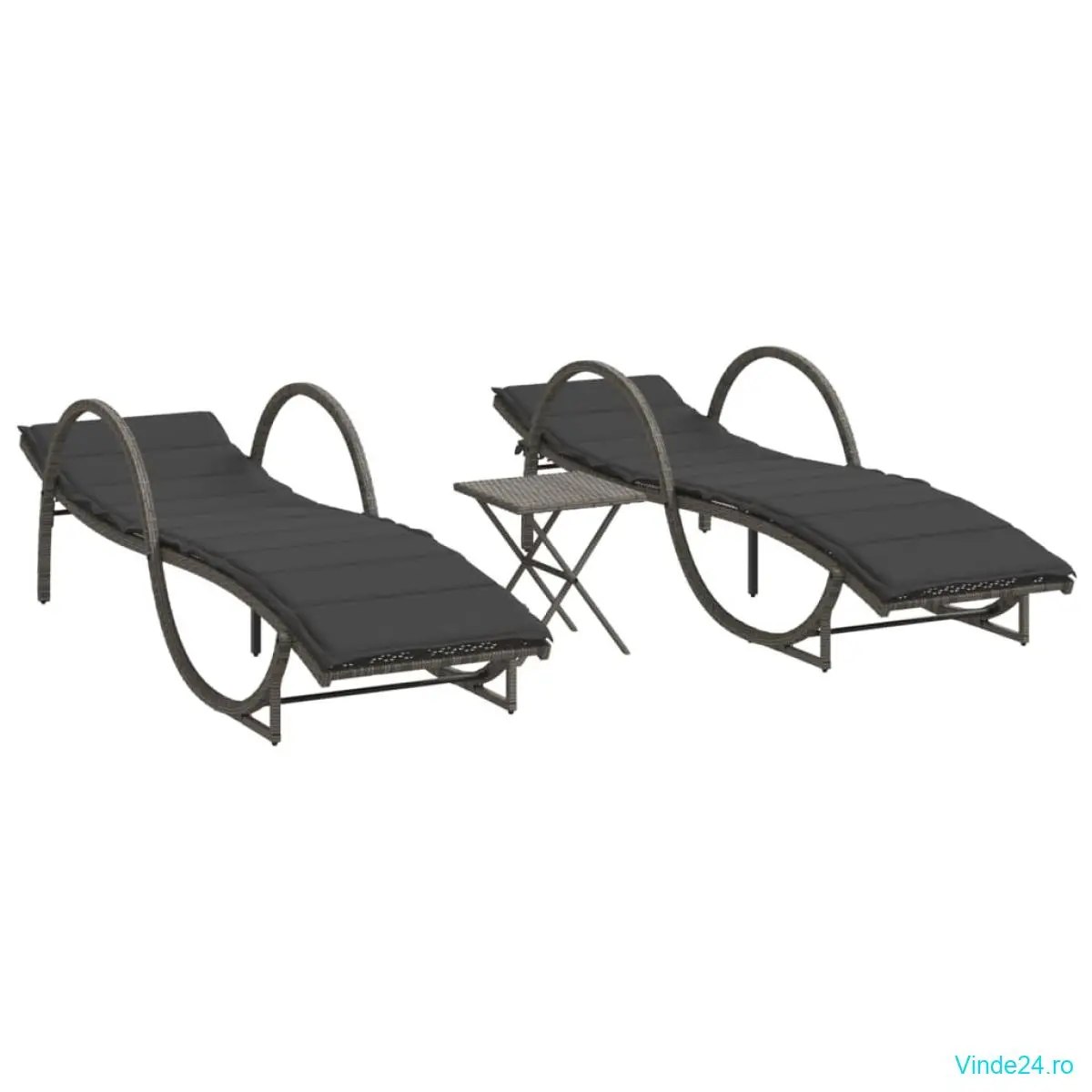 vidaXL Șezlonguri, 2 buc., cu masă, gri, poliratan