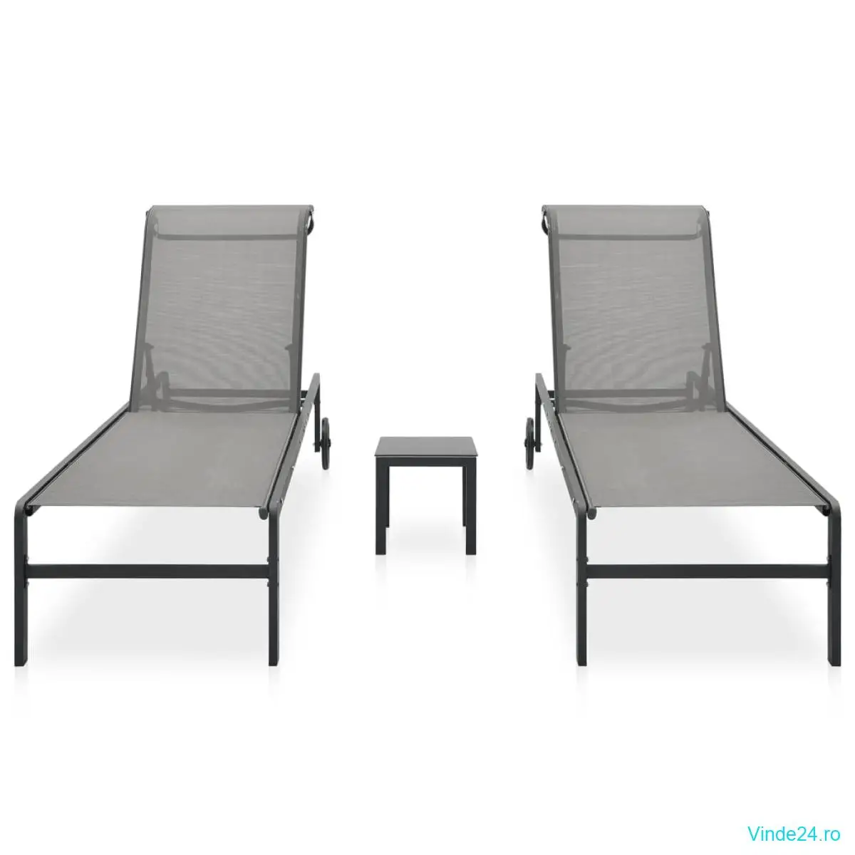 vidaXL Șezlonguri cu masă, 2 buc., textilenă și oțel