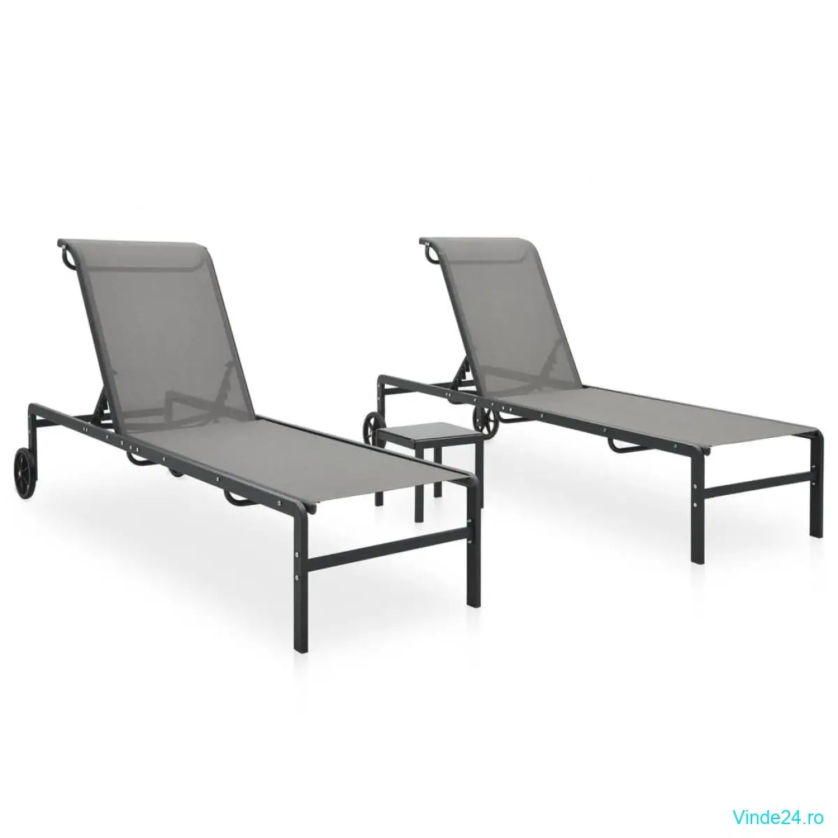 vidaXL Șezlonguri cu masă, 2 buc., textilenă și oțel