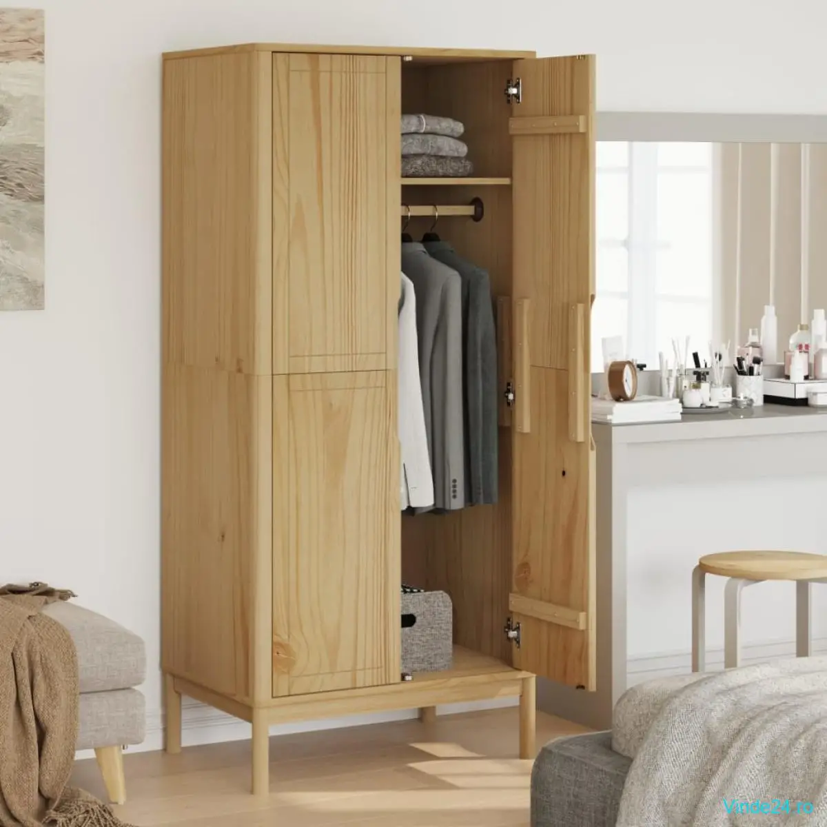 Acest șifonier clasic din lemn oferă spațiu amplu de depozitare pentru a vă păstra hainele, pantofii și accesoriile ordonate.