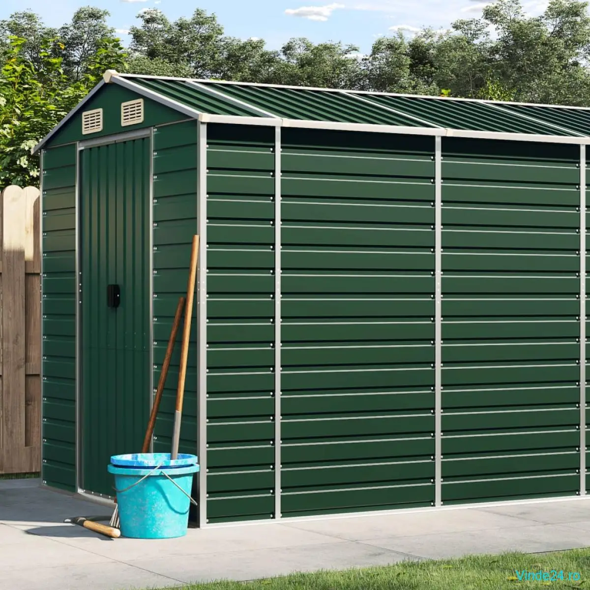 vidaXL Șopron de grădină, verde, 191x725x198 cm, oțel zincat