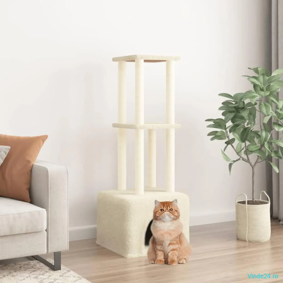 vidaXL Ansamblu de pisici cu stâlpi din funie de sisal, crem, 133,5 cm