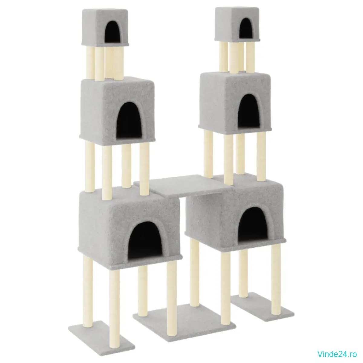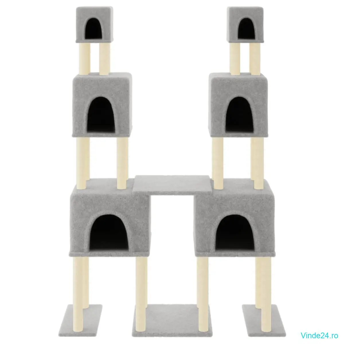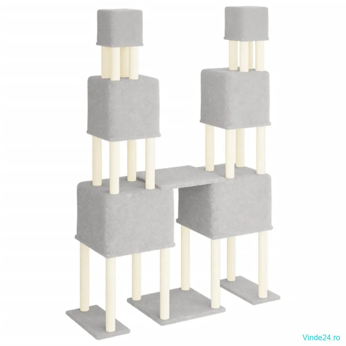 vidaXL Ansamblu pisici, stâlpi din funie sisal, gri deschis, 199 cm