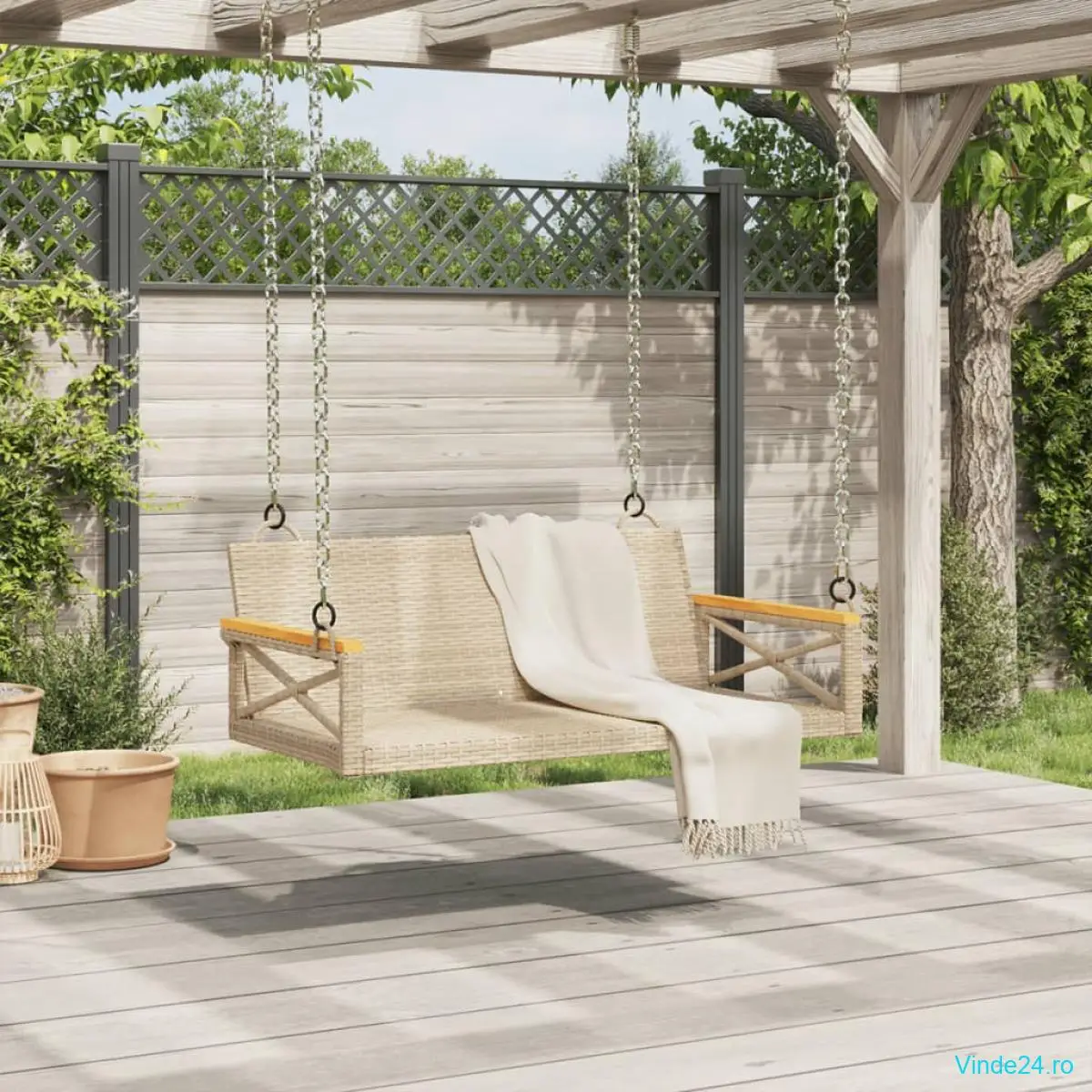 • Pachetul de livrare include doar o bancă balansoar. Cadrul leagănului și lanțurile pentru suspendare nu sunt incluse.