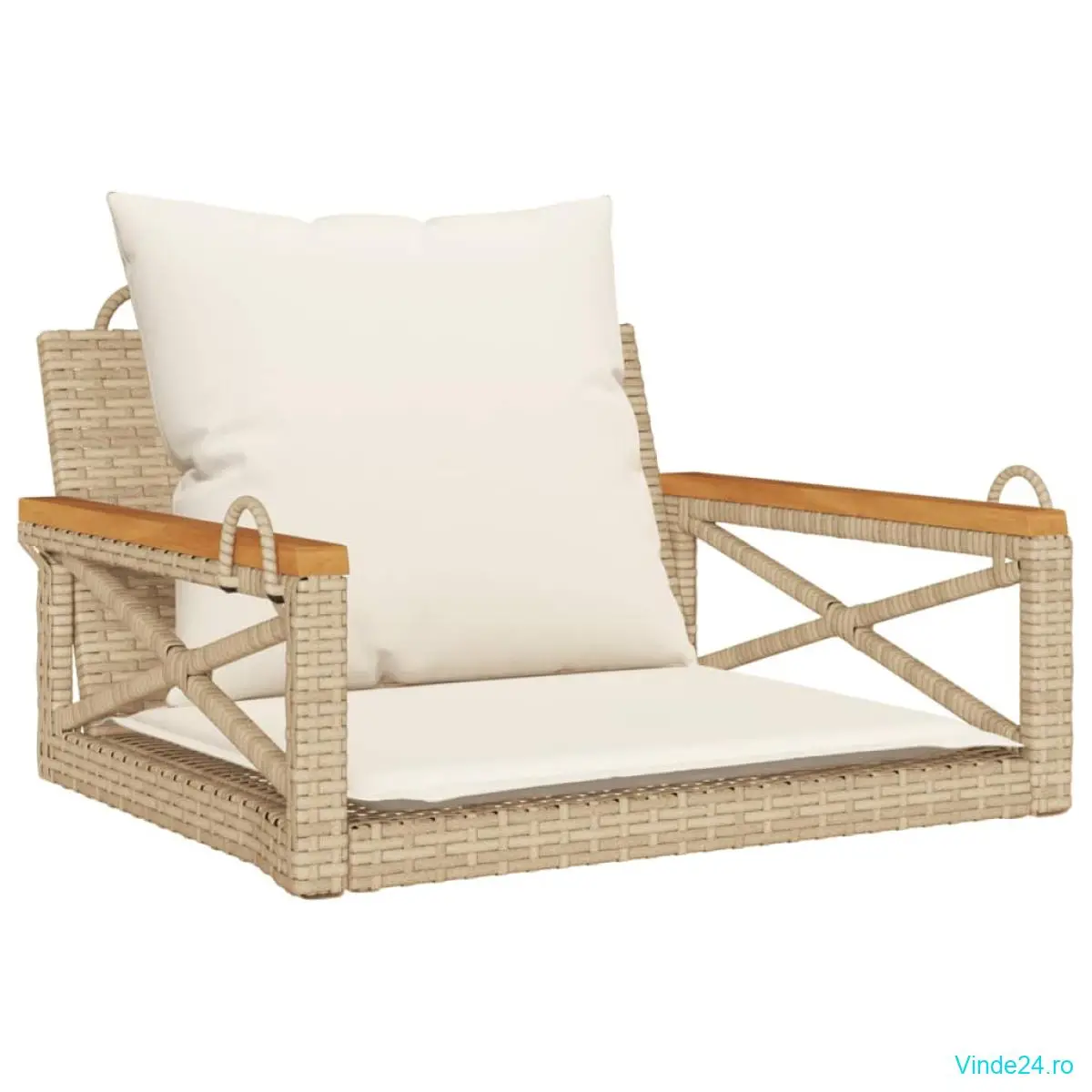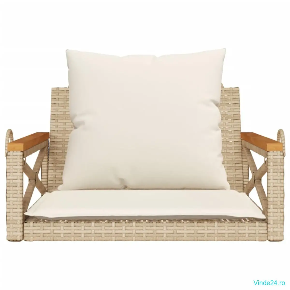 vidaXL Bancă de balansoar cu perne, bej, 63x62x40 cm, poliratan