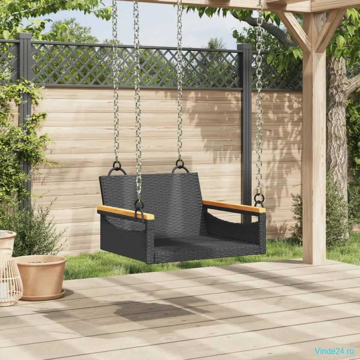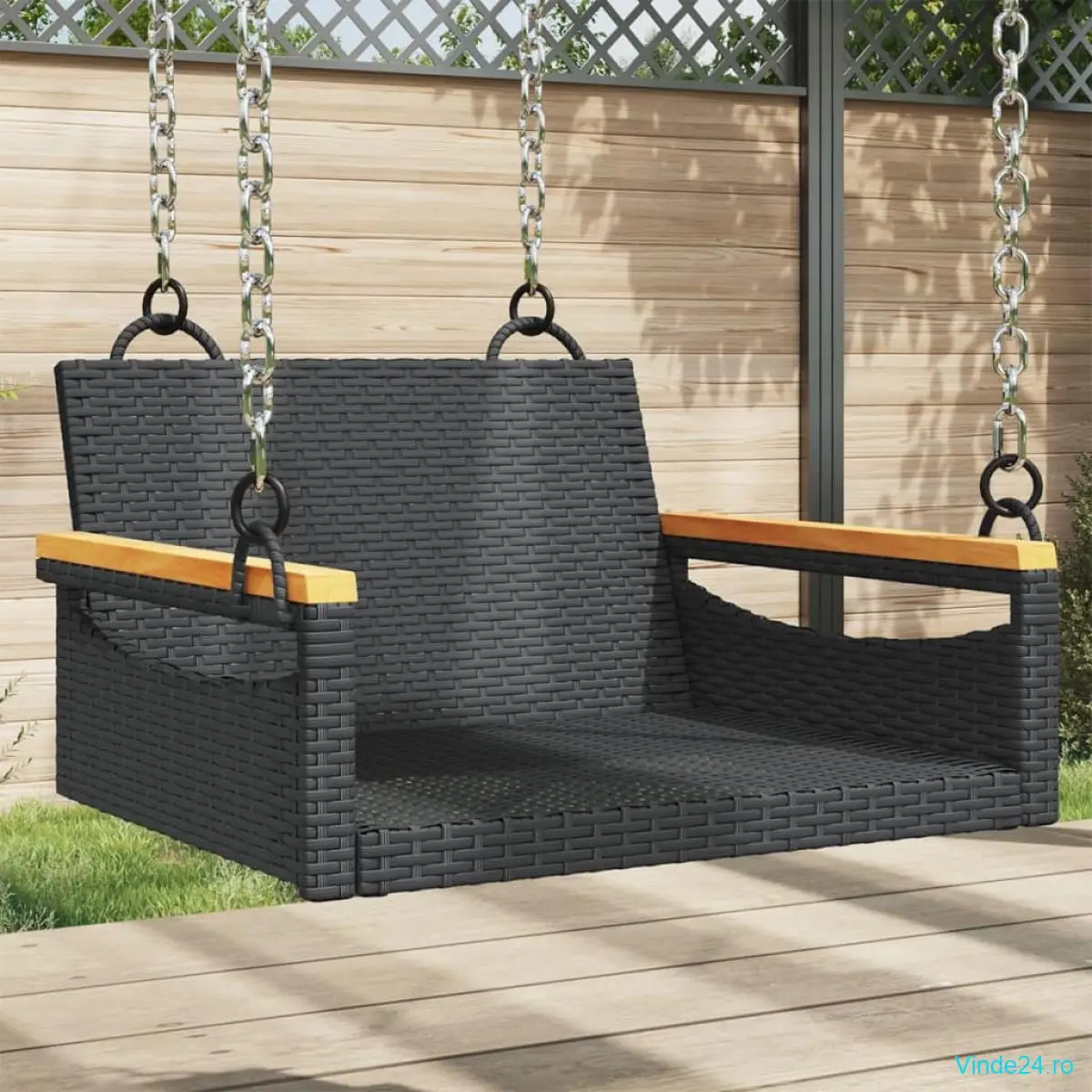vidaXL Bancă de balansoar, negru, 63x62x40 cm, poliratan
