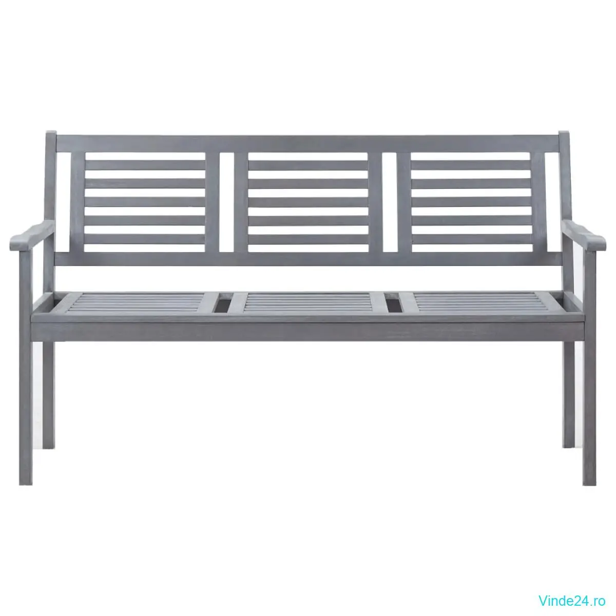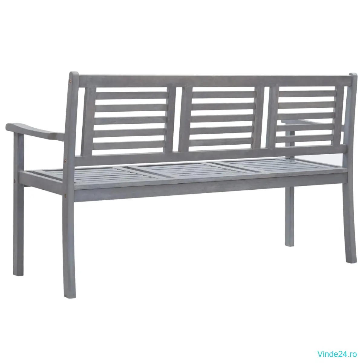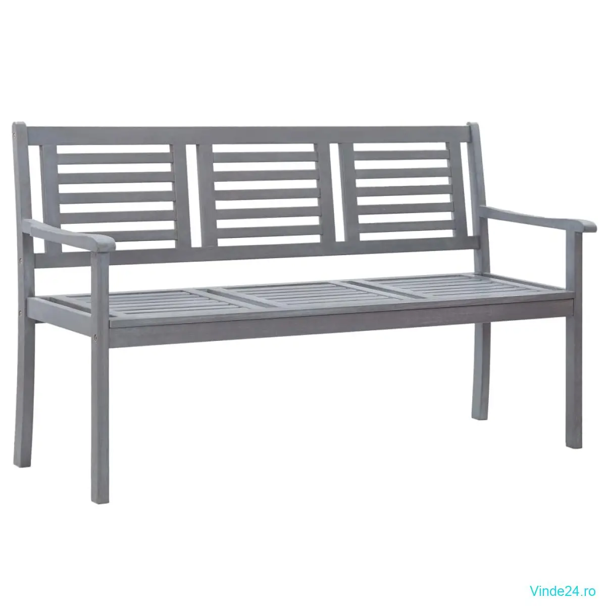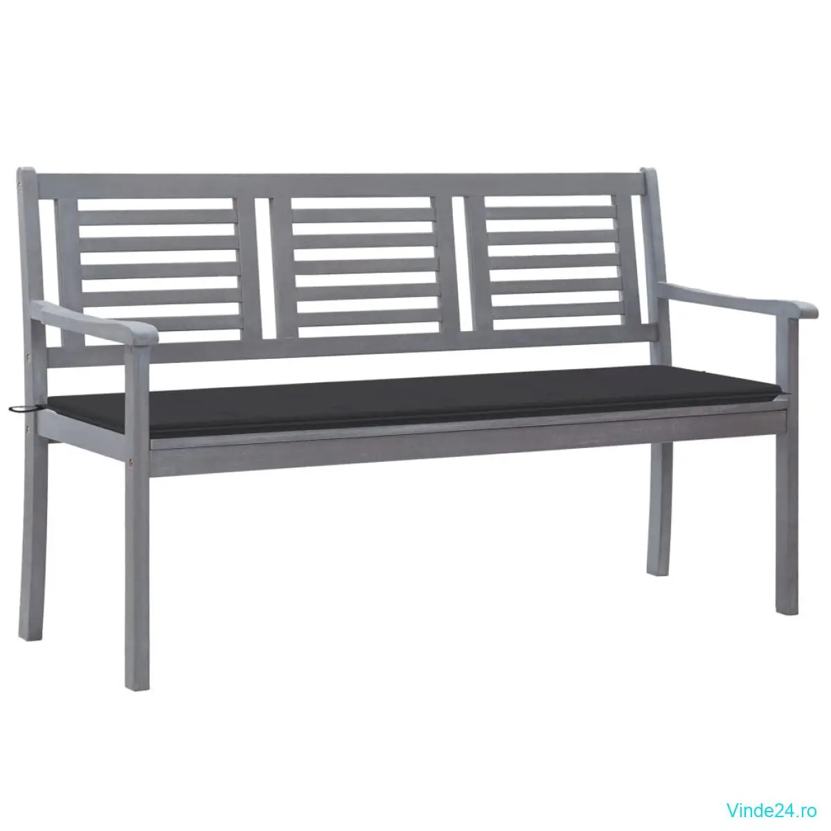 vidaXL Bancă grădină cu 3 locuri cu pernă, 150 cm, gri, lemn eucalipt