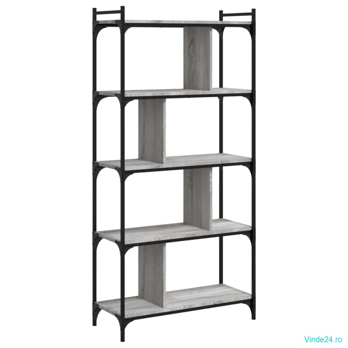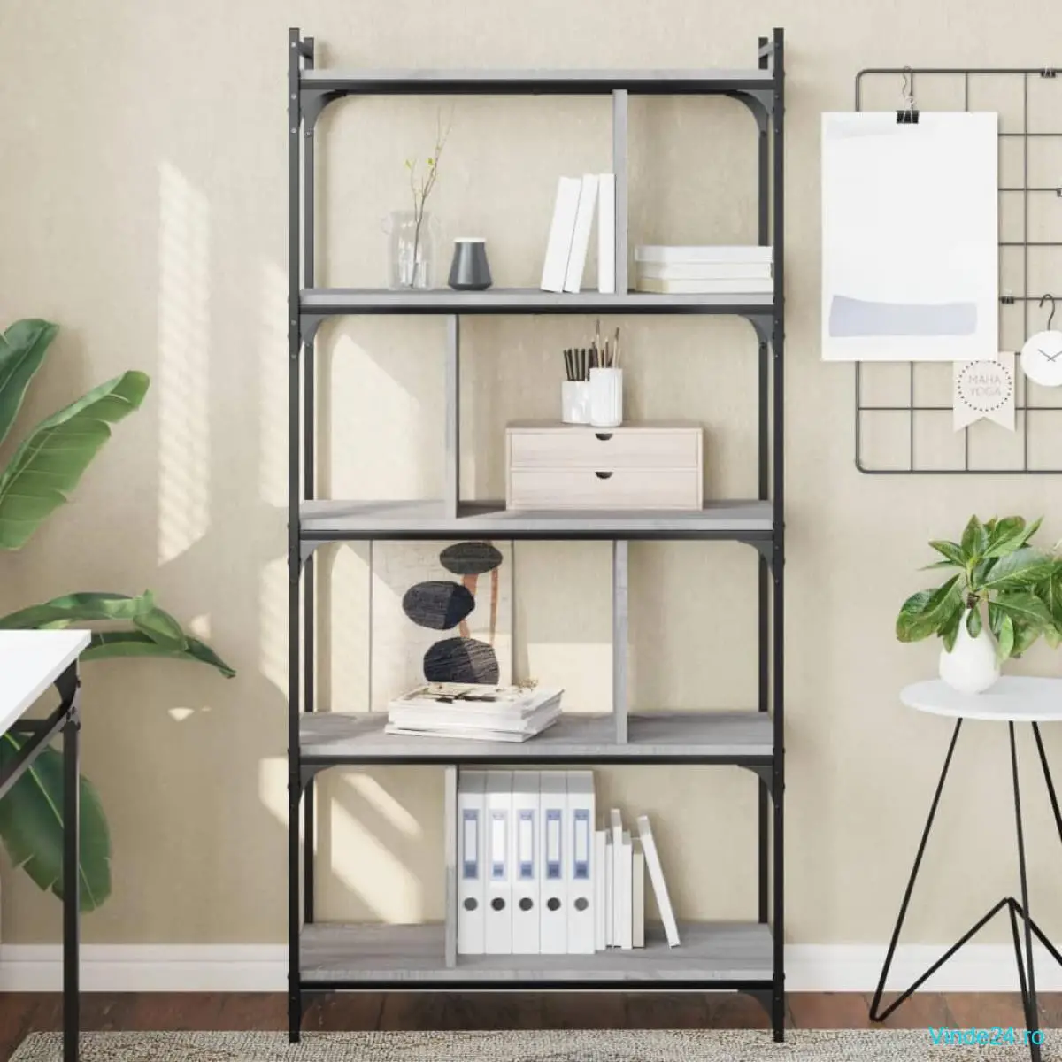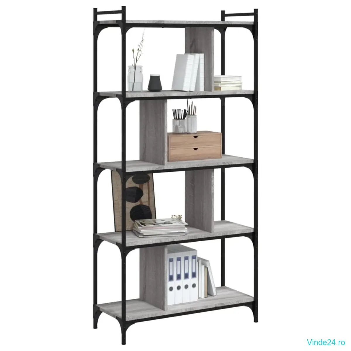 vidaXL Bibliotecă cu 5 niveluri gri sonoma 76x32x158 cm lemn compozit