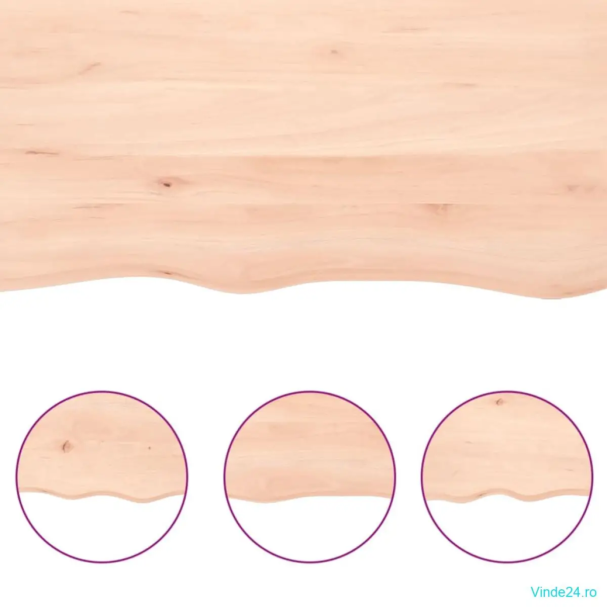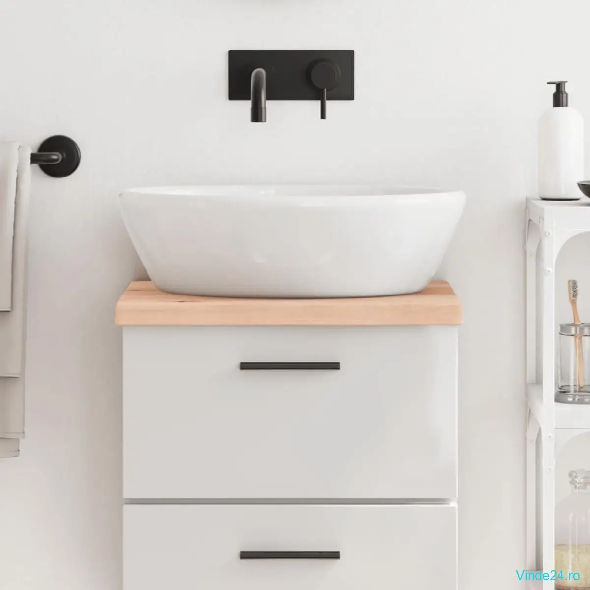 - Suprafață netratată: Deoarece blatul de baie este realizat din lemn masiv de stejar fără finisaj, îi puteți păstra culoarea naturală, dar îl puteți și vopsi sau lăcui după preferințe.
