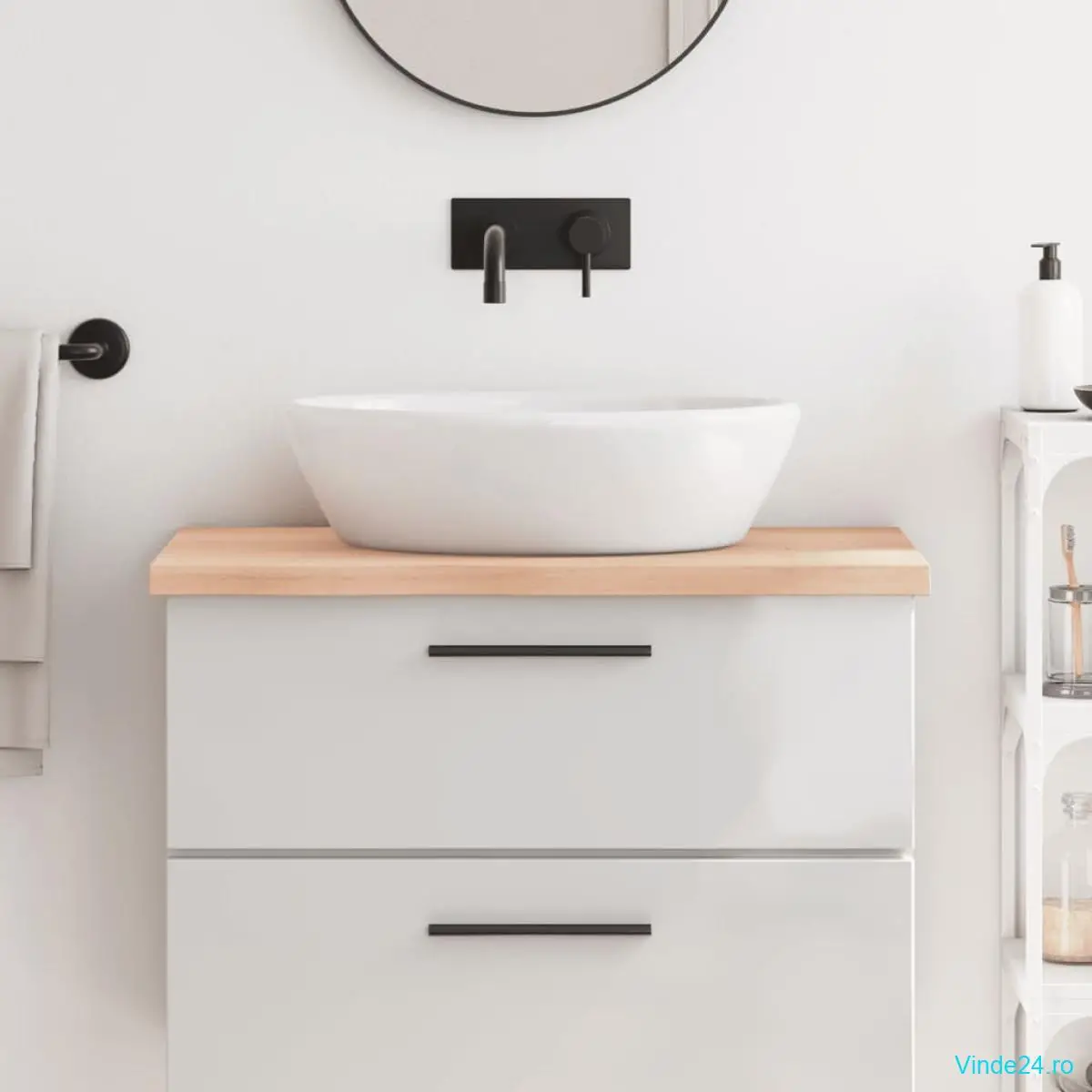 • Suprafață netratată: Deoarece blatul de baie este realizat din lemn masiv de stejar fără finisaj, îi puteți păstra culoarea naturală, dar îl puteți și vopsi sau lăcui după preferințe.