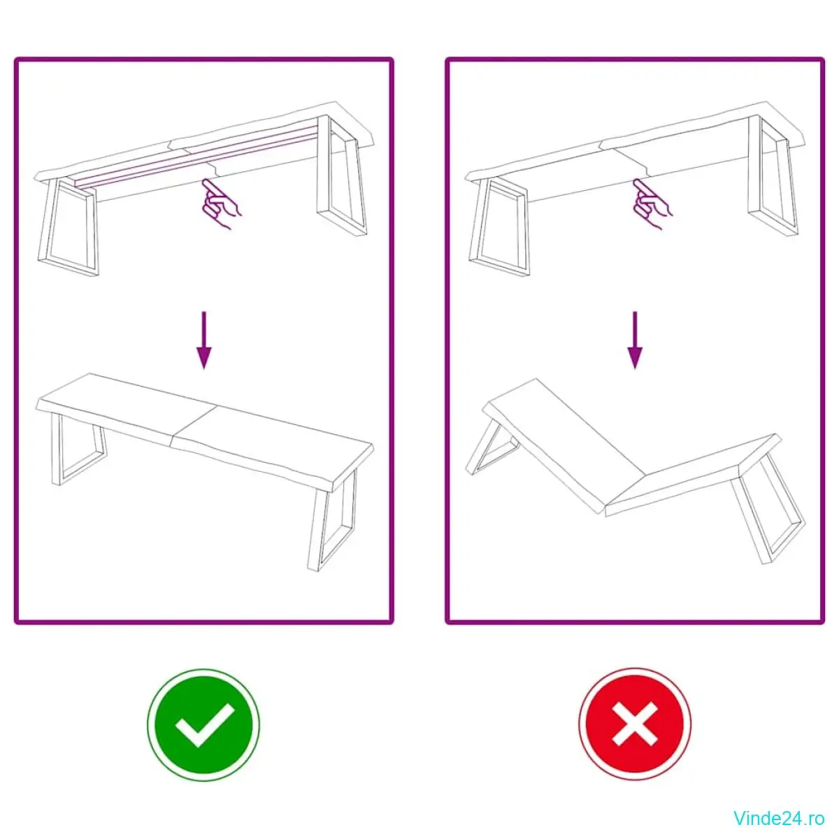 • Suprafață tratată: Blatul de masă a fost lăcuit, astfel încât este gata de utilizare, deoarece nu este necesar un finisaj suplimentar.