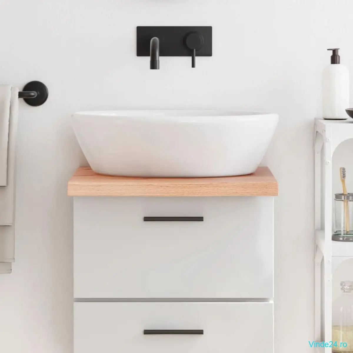 - Aplicații versatile: Pe lângă funcția de blat în baie, acest raft de lemn poate fi combinat cu diferite baze în funcție de nevoile dvs. Poate fi utilizat ca raft, blat pentru dulap, blat de birou, blat de masă etc.