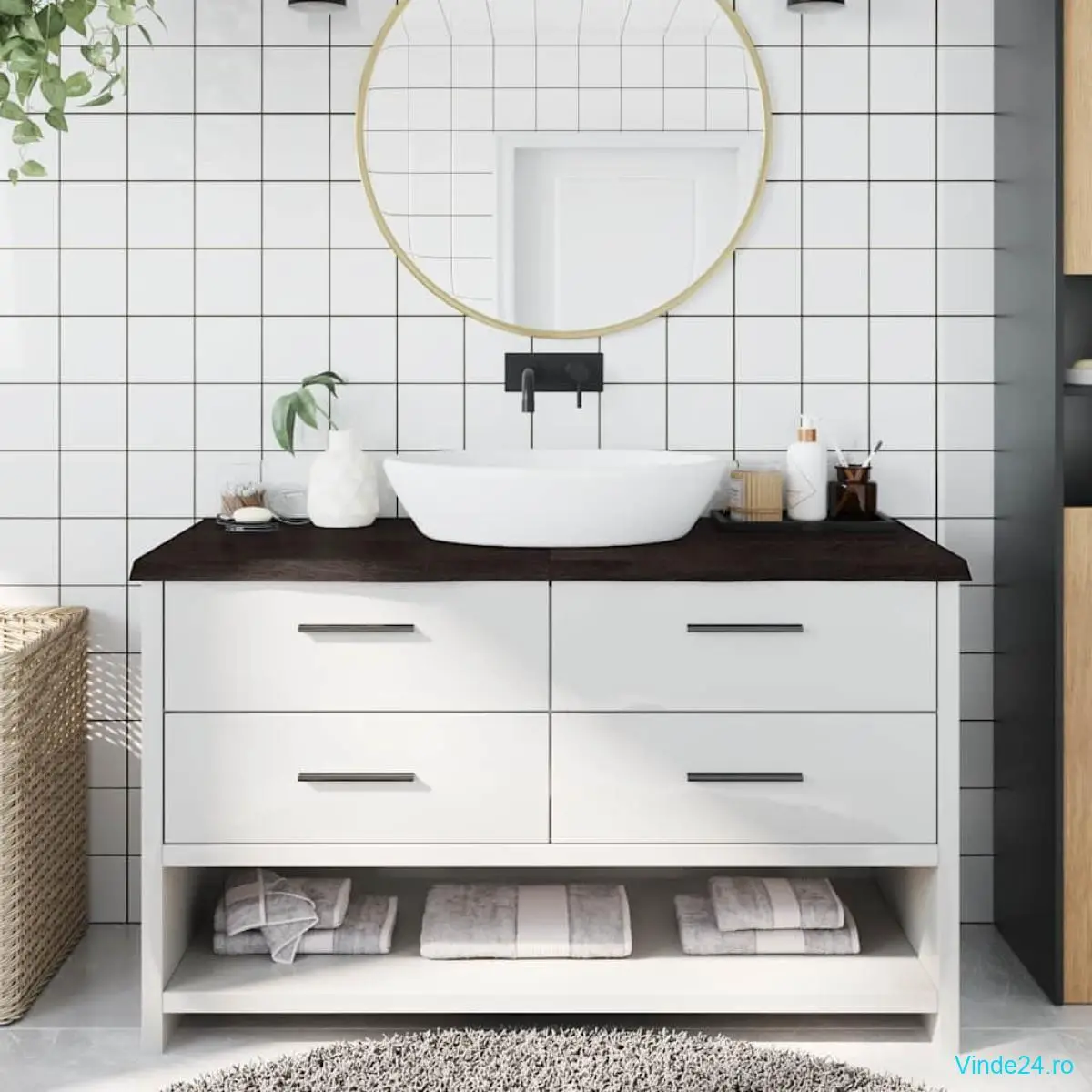 • Suprafață tratată: Blatul de baie a fost tratat cu vopsea de culoare închisă, astfel încât este gata de utilizare, deoarece nu este necesar un finisaj suplimentar.