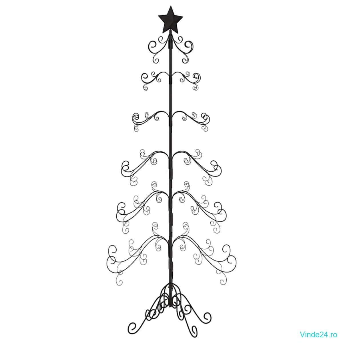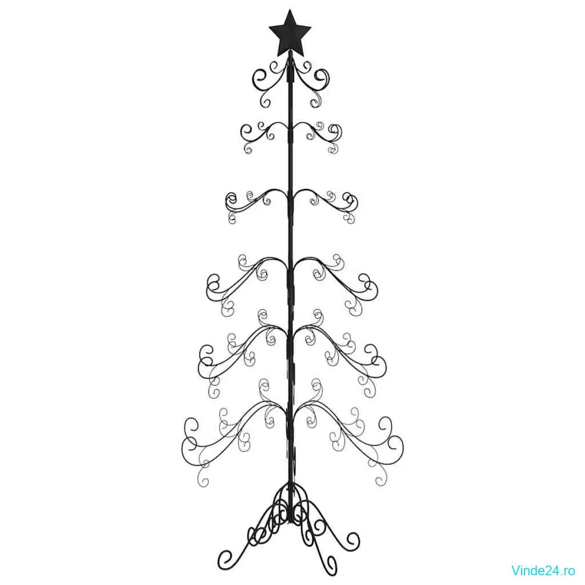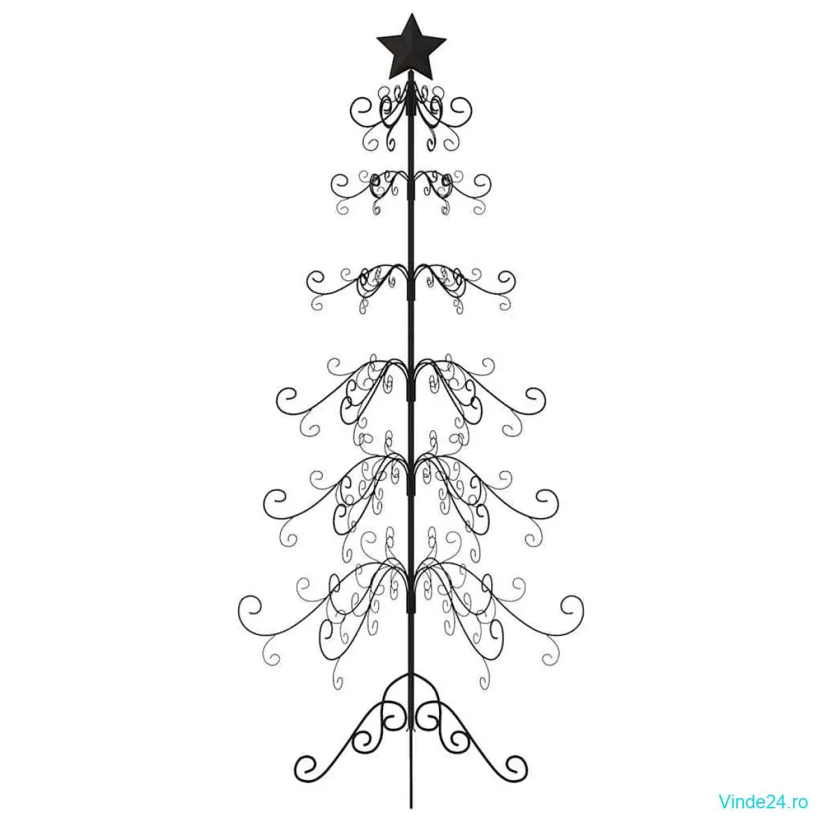 vidaXL Brad de Crăciun din metal pentru decor, negru, 215 cm