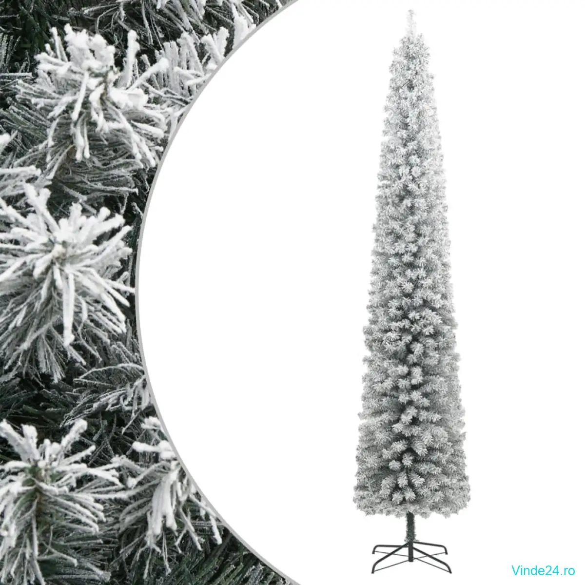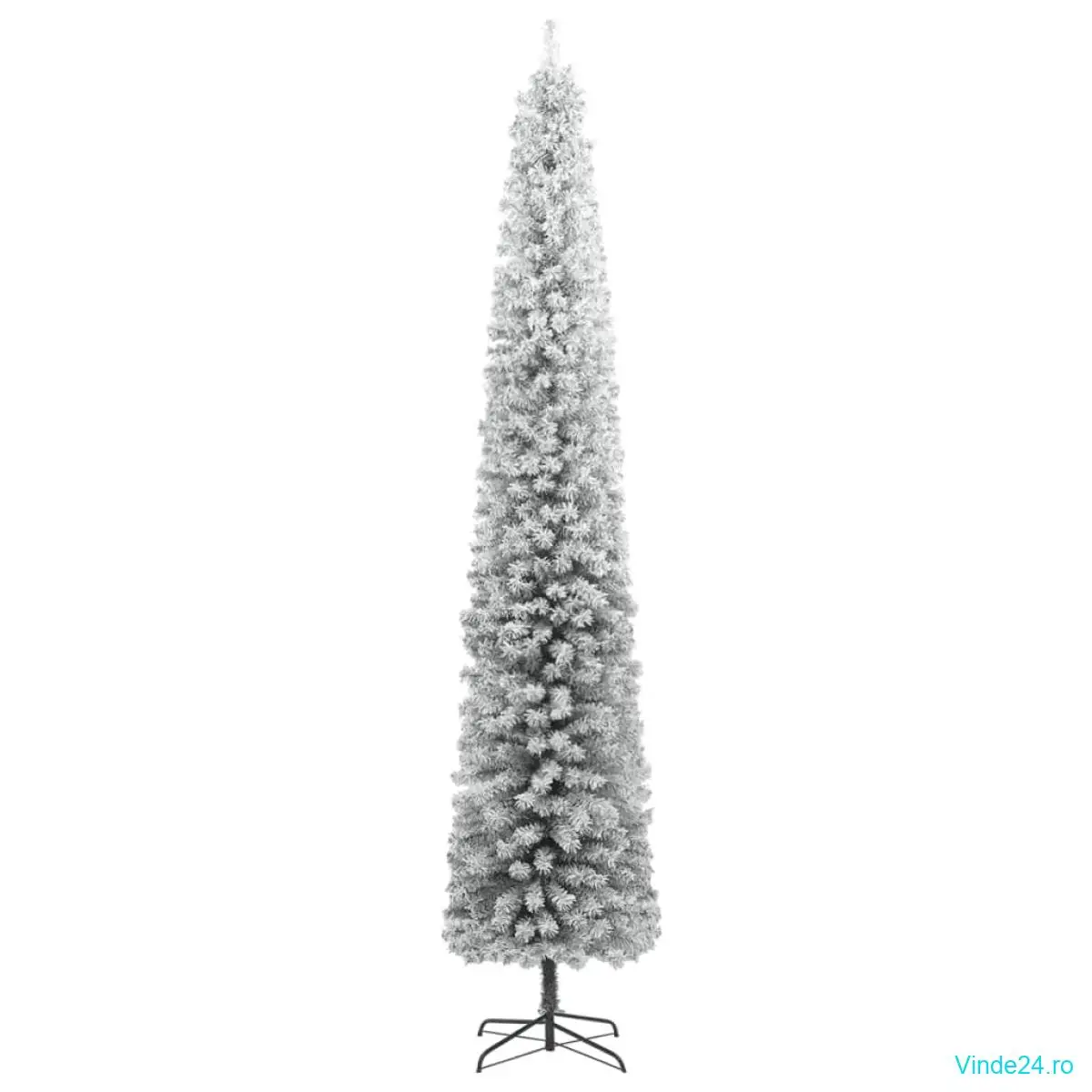 vidaXL Brad de Crăciun subțire cu suport și zăpadă, 300 cm, PVC