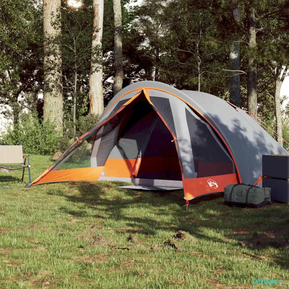 vidaXL Cabină cort de camping 4 persoane gri și portocaliu impermeabil