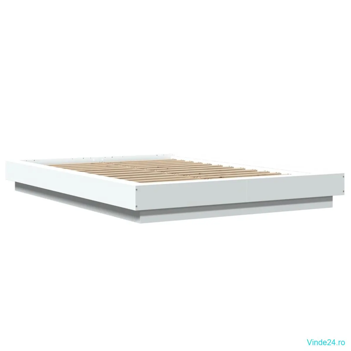 vidaXL Cadru de pat, alb, 120x190 cm, lemn prelucrat