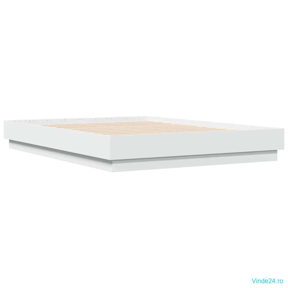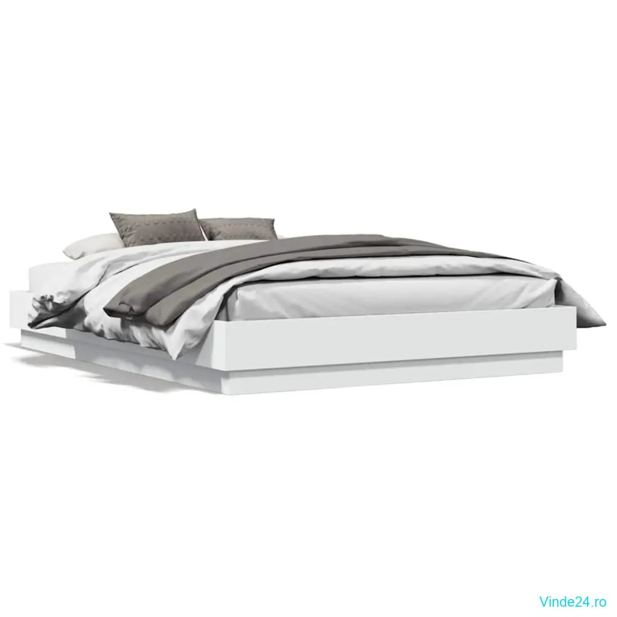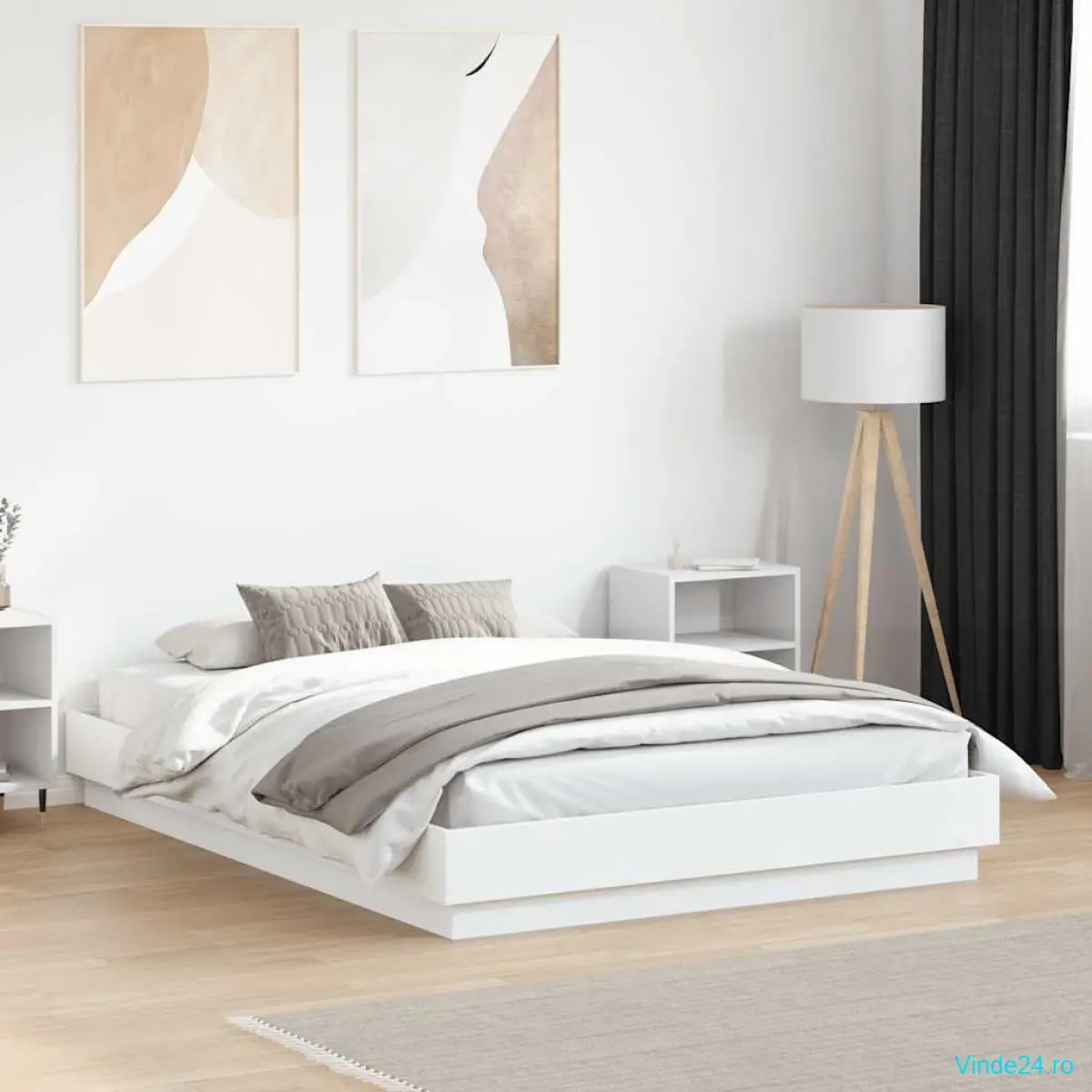 vidaXL Cadru de pat, alb, 160x200 cm, lemn prelucrat