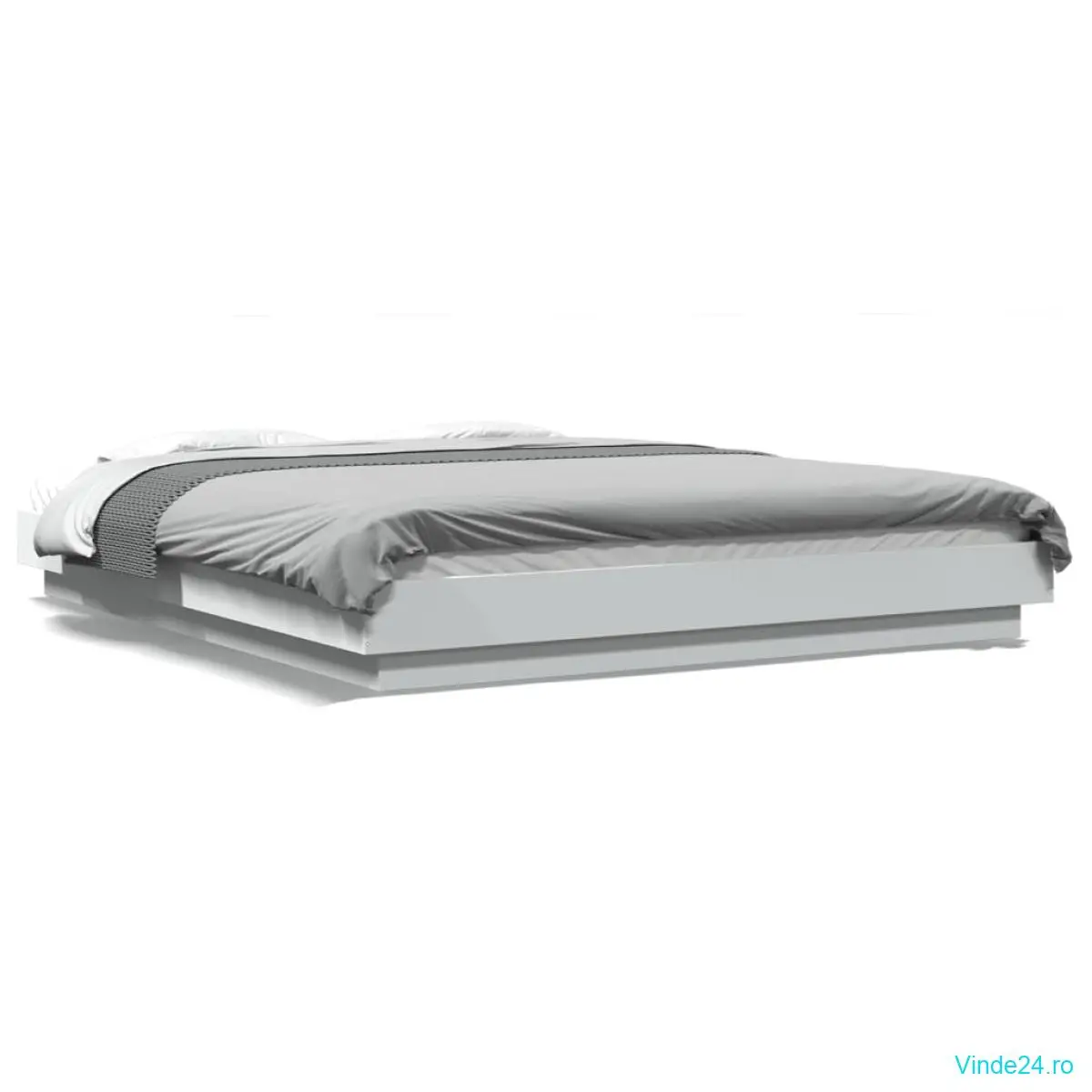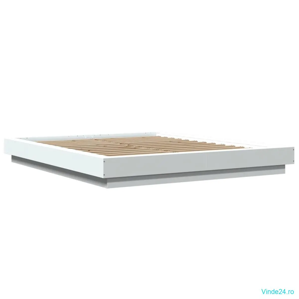 vidaXL Cadru de pat, alb, 150x200 cm, lemn prelucrat