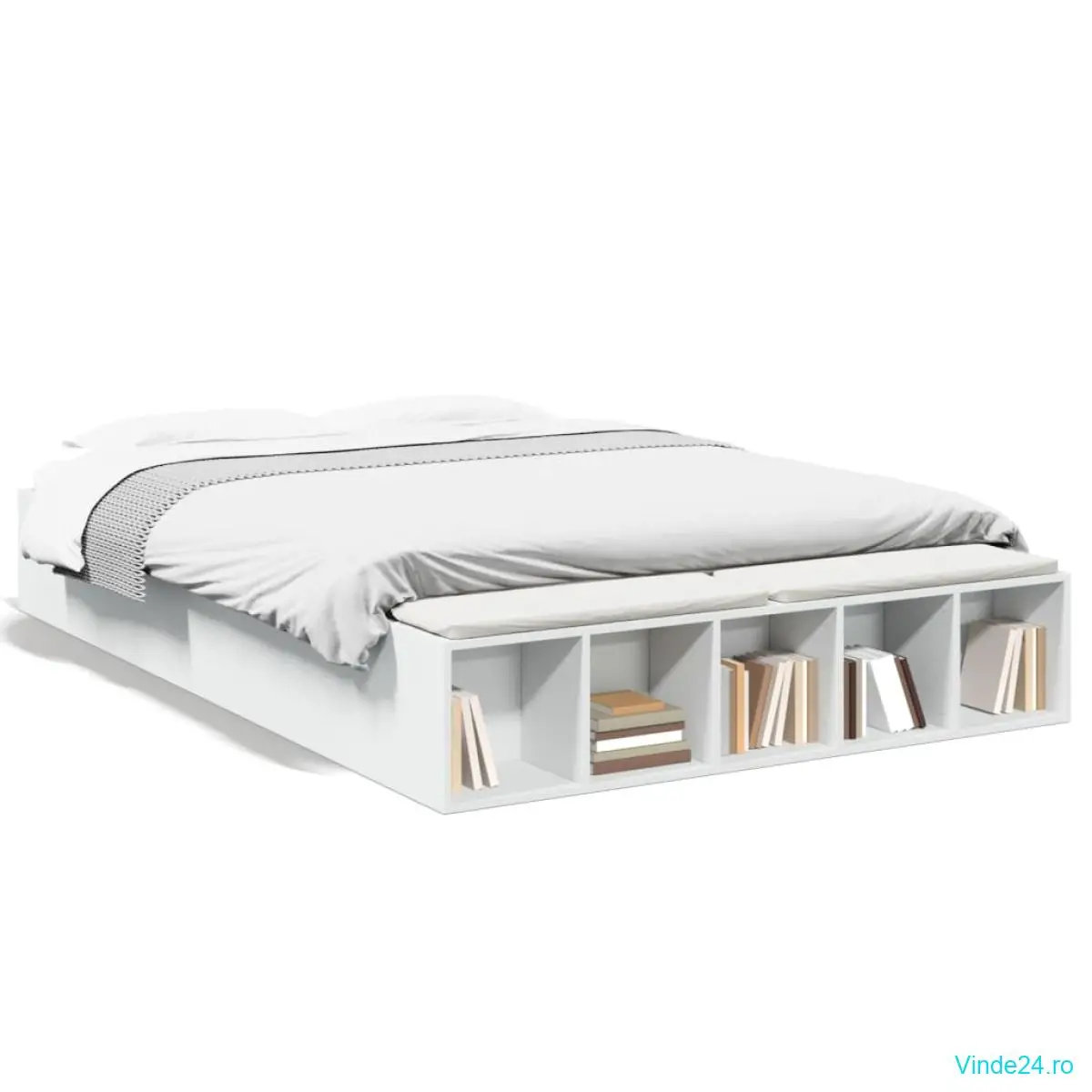 vidaXL Cadru de pat, alb, 150x200 cm, lemn prelucrat