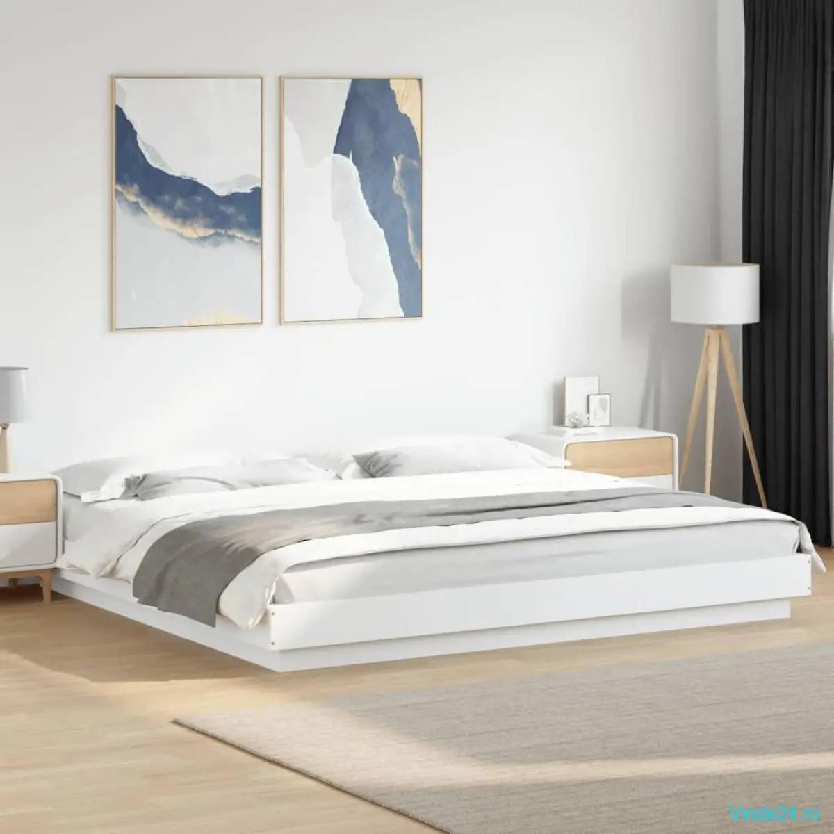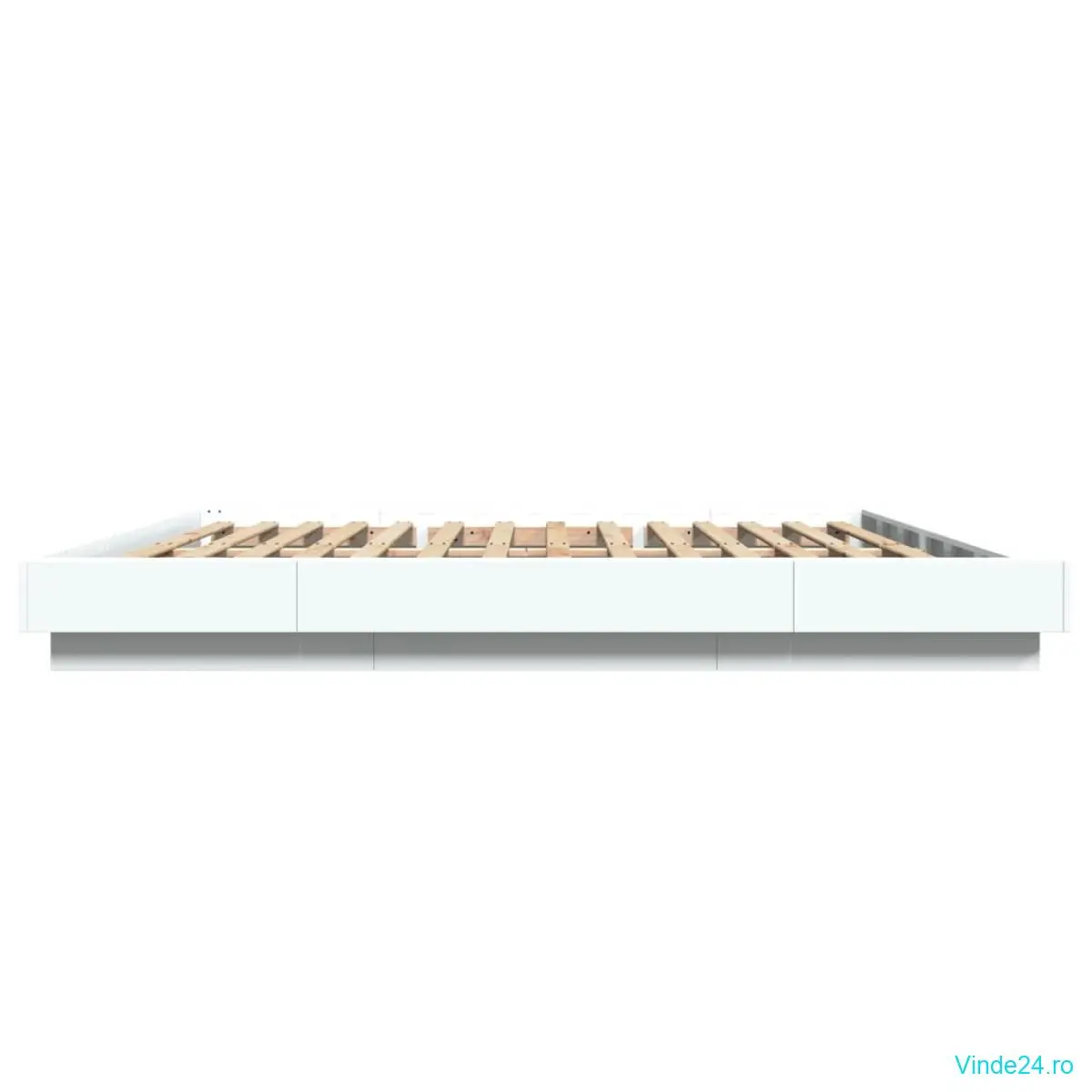 vidaXL Cadru de pat, alb, 200x200 cm, lemn prelucrat