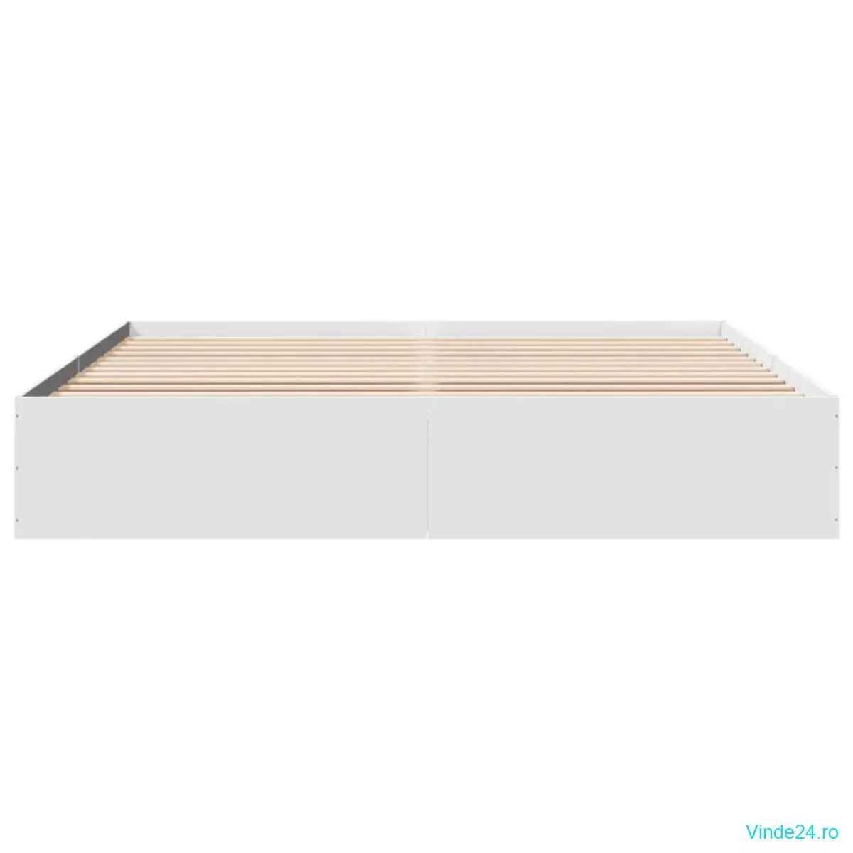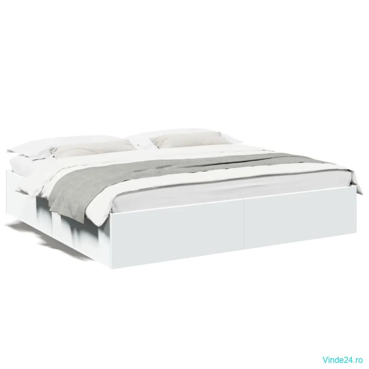 vidaXL Cadru de pat, alb, 200x200 cm, lemn prelucrat