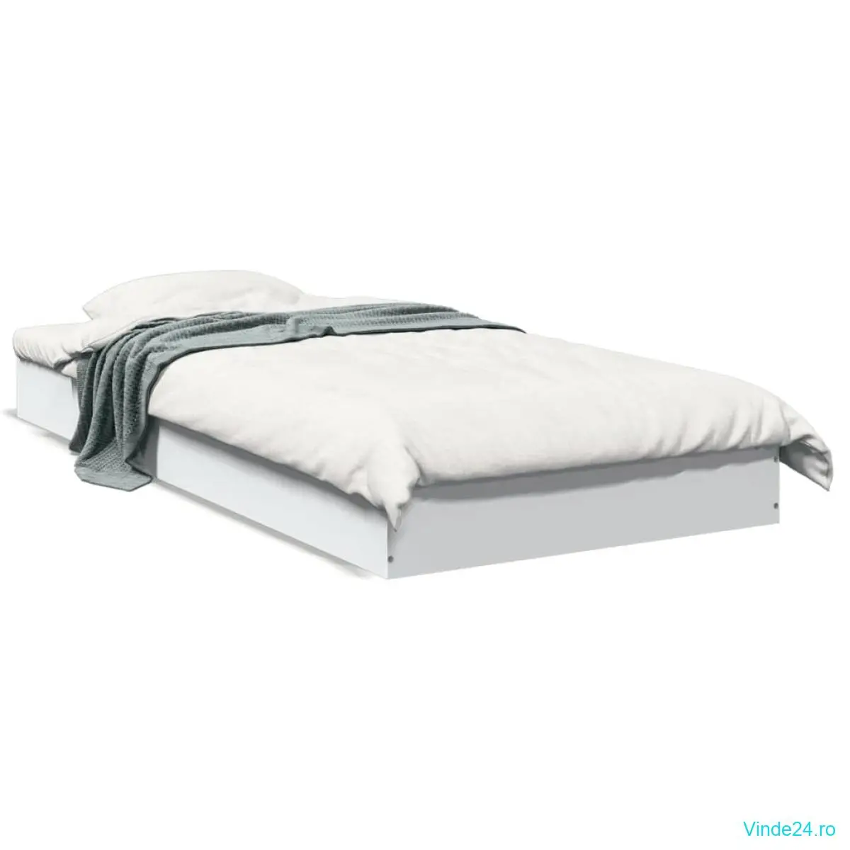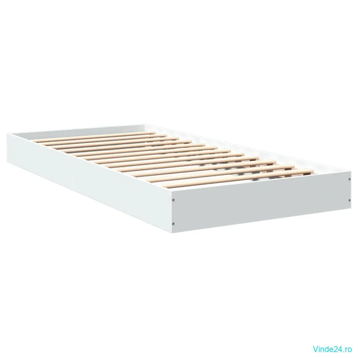 vidaXL Cadru de pat, alb, 75x190 cm, lemn prelucrat